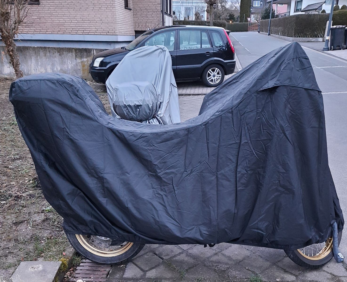 habe eine Plane von DS Covers speziell für TC mit hoher Scheibe und wenn du willst auch Koffer .