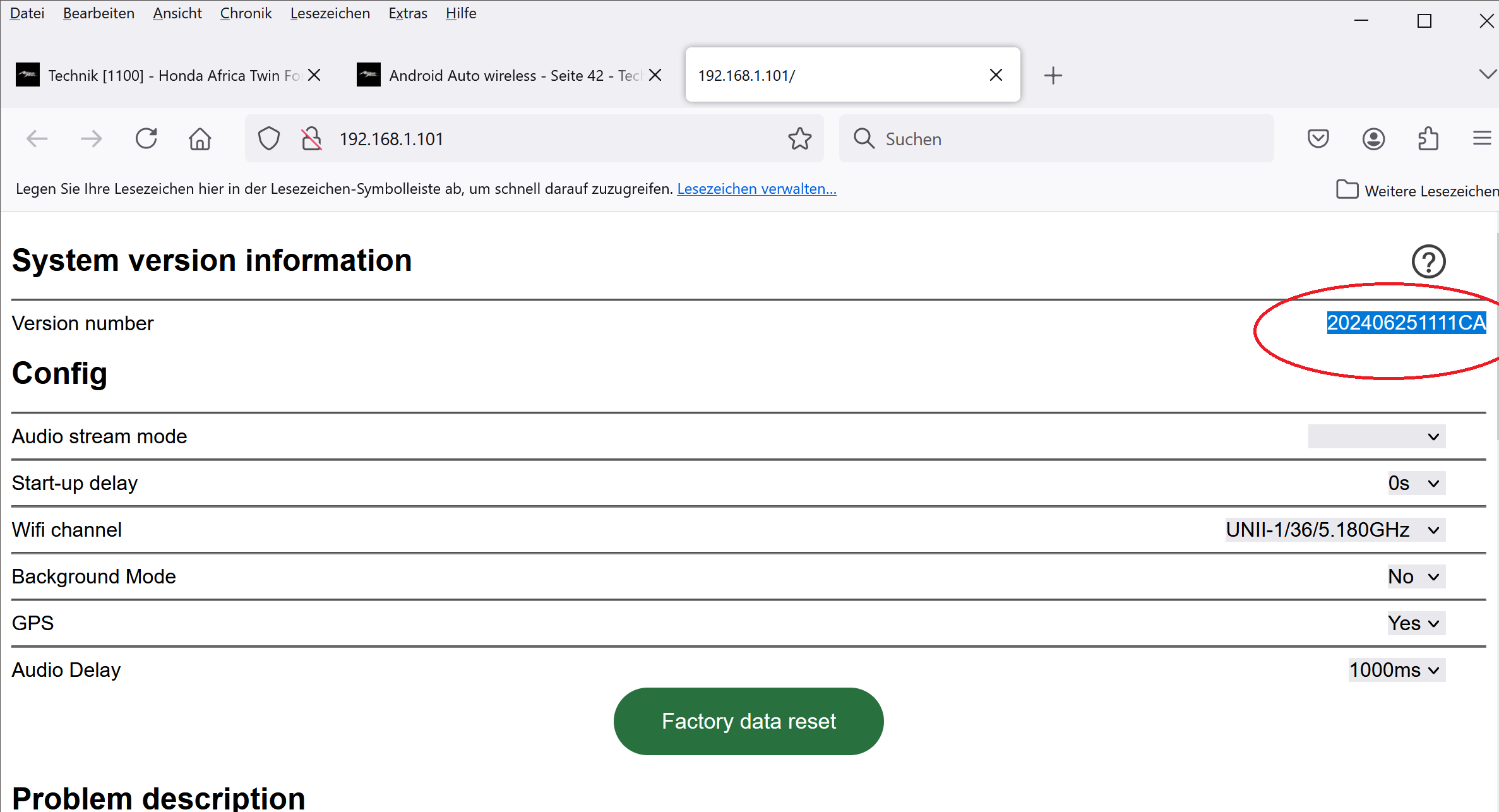 6. WLan wird unterbrochen, da der Stick neustartet. Also nochmal neu verbinden und checken, ob die Versionsnummer passt.