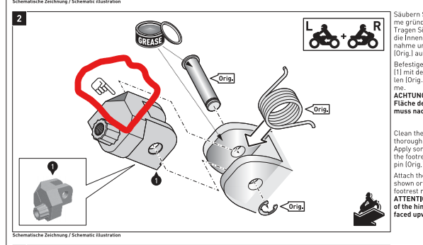 habe gerade versucht die Evo Fußrasten anzubringen. Laut Einbaueinleitung soll die abgeschrägte Ecke der Fußrastenaufnahme nach oben zeigen. Das funktioniert bei mir aber nicht. Entweder bei der 1100 ist das andersherum oder die haben mir die falschen Dinger geschickt. Außerdem habe ich das Gefühl, dass zumindest bei der 1100 das keine zusätzlichen cm bringt. Raste ist genauso hoch wie die originalen Dinger.