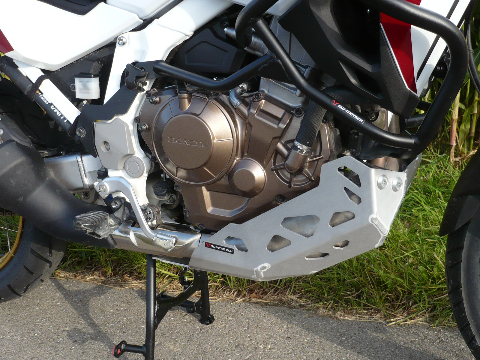 von SW-Motech ist verbaut: Hauptständer, Sturzbügel, massiver Unterfahrschutz.