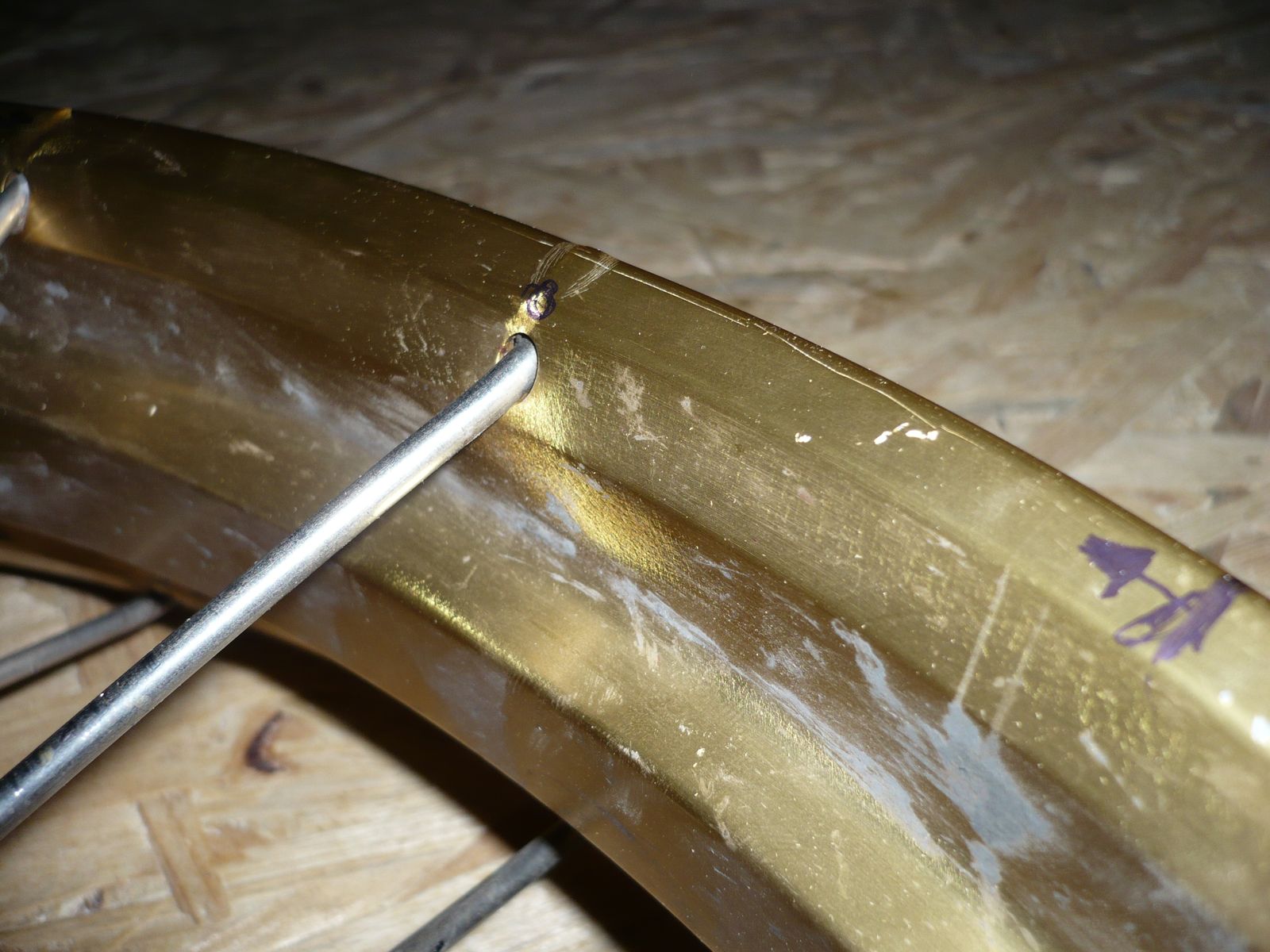 Leichte Delle im Felgenhorn. Die Schlauchlose Felge ist selbstverständlich noch dicht . Beim Fahren war nichts spürbar. Kein Seitenschlag.