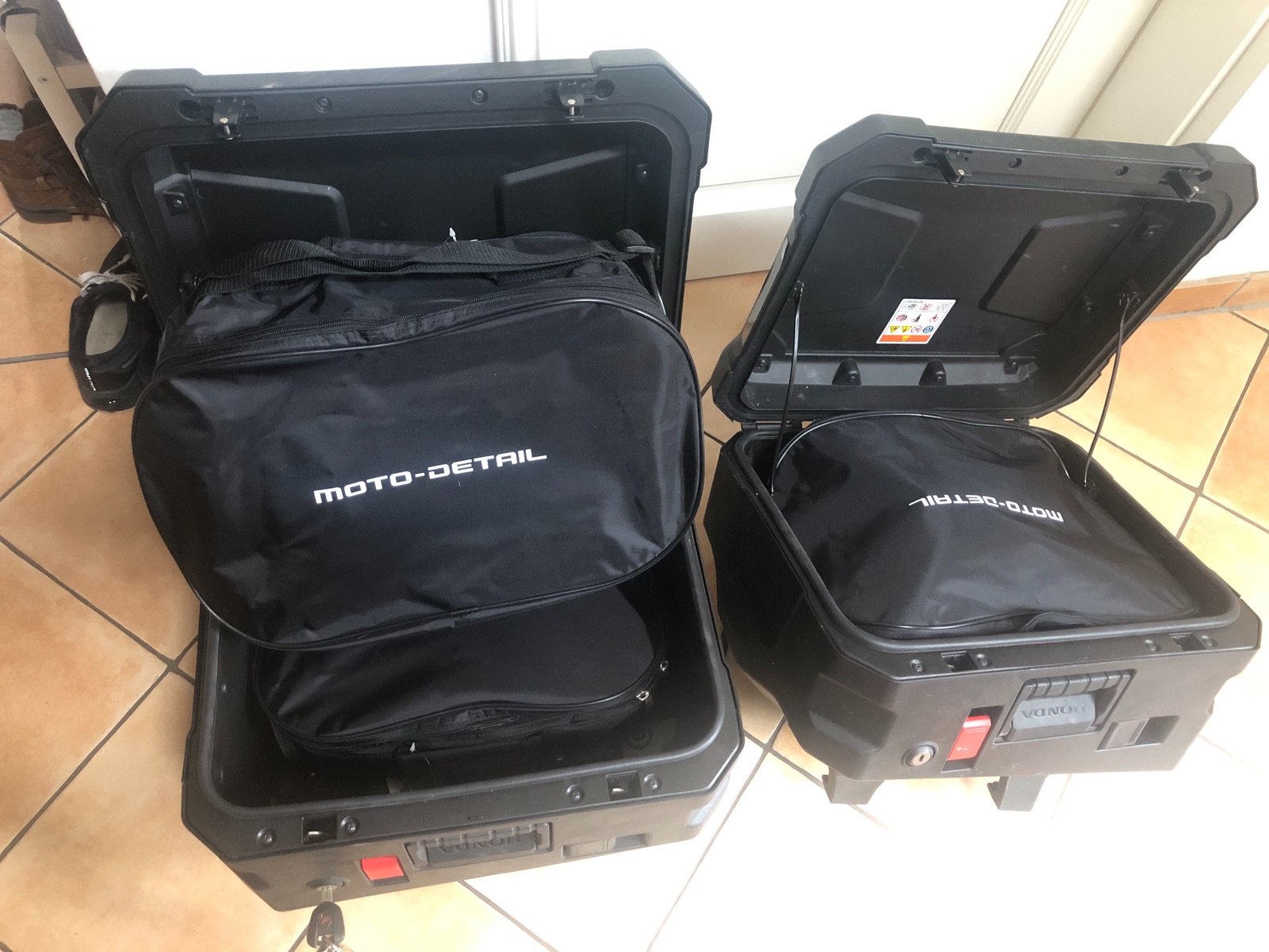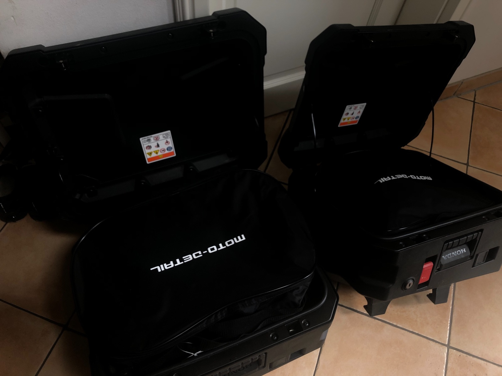 Die Koffer sind ja eher „beulenartig“ geformt. Der größere Koffer links ist zwar etwas regelmäßiger als der rechte, aber trotzdem unten (also radnah) kleiner als oben an der Klappe. Hier lege ich die kleine Tasche zuerst rein und die große darüber. Damit habe ich das Volumen fast komplett gefüllt, bzw. fast schon überfüllt. Wenn ich nur die große Tasche nehme, verliere ich den kleineren Platz darunter.
