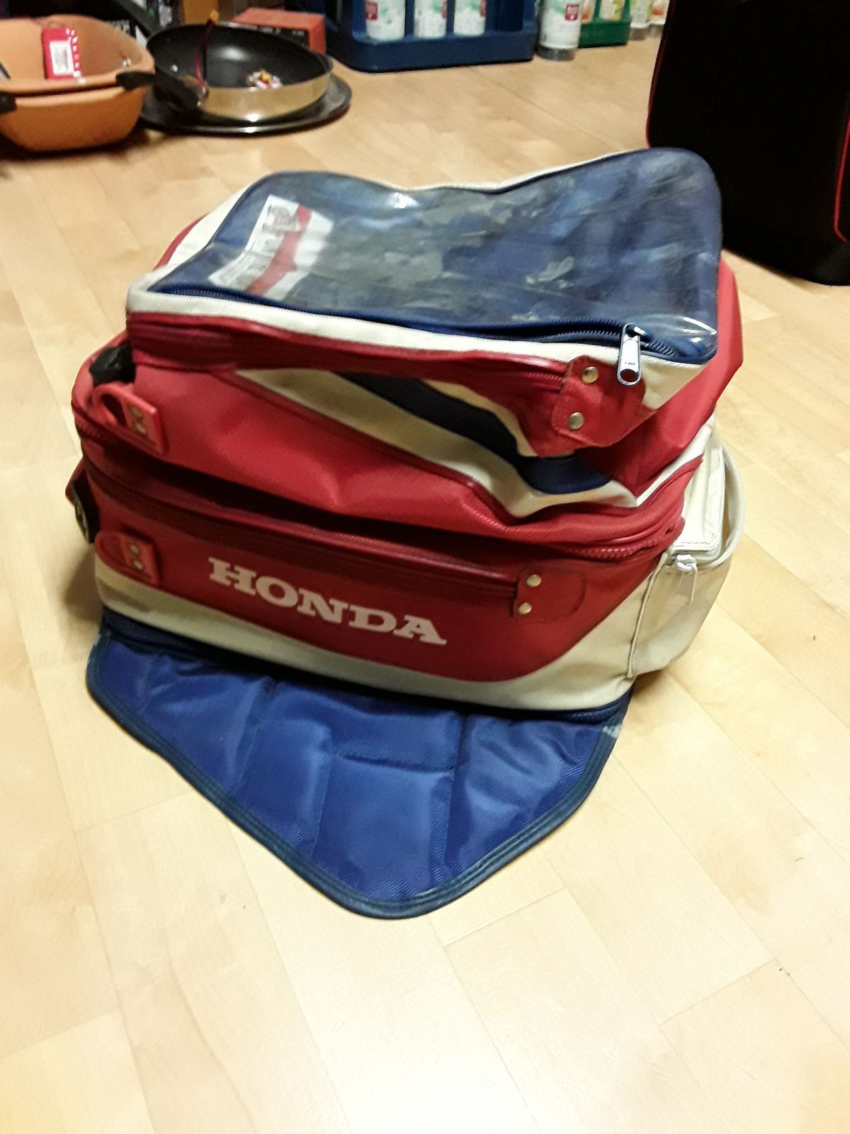 ich habe beim räumen den abgebildeten Magnettankrucksack ans Tageslicht befördert. Mit ein wenig Aufwand ist der sicher noch eine Zeitlang gut zu gebrauchen. Das Kartenfach ist nicht mehr sonderlich gut. Die Folie ist etwas undurchsichtig geworden. Alle Reisverschlüsse sind in Ordnung. Damit es später keine Reklamationen gibt bitte ich um abholung