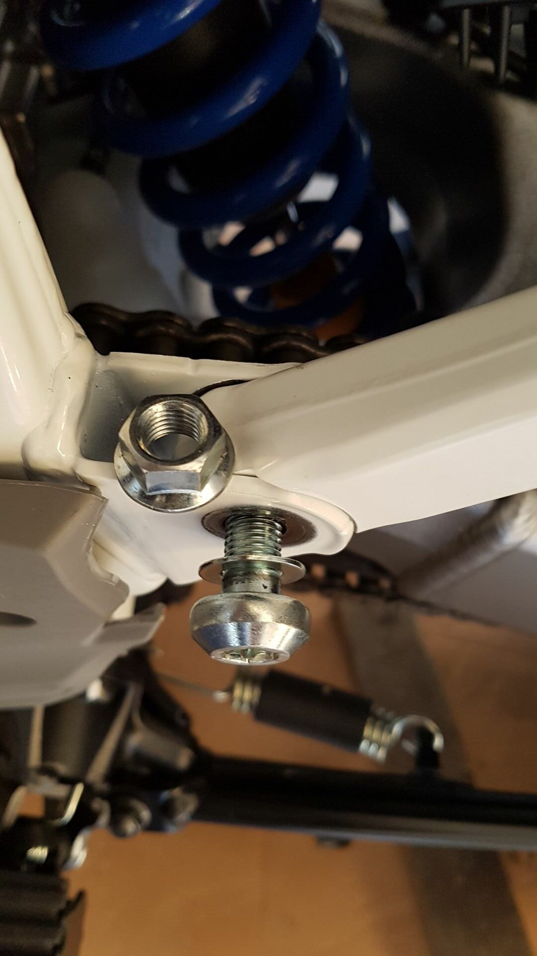 die linke Seite der Rahmenschraube geht, rechst`s stört der Bremszylinder der Fußbremse ein wenig.