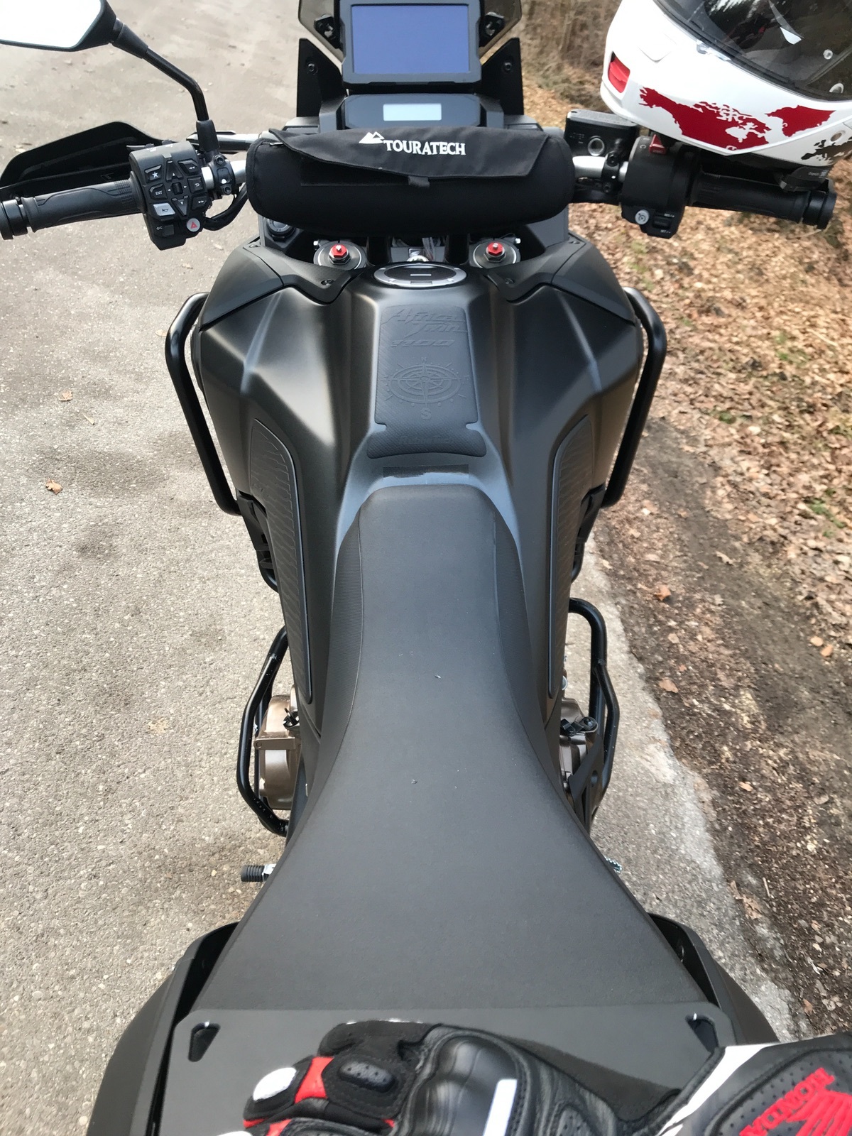 Muss evtl auf der rechten Seite die Blende vom Kat demontiert werden, laut deren Beschreibung nicht.... und zur Info...soll auch mit montierten Touratech Bügeln, wie ich sie habe passen....danke