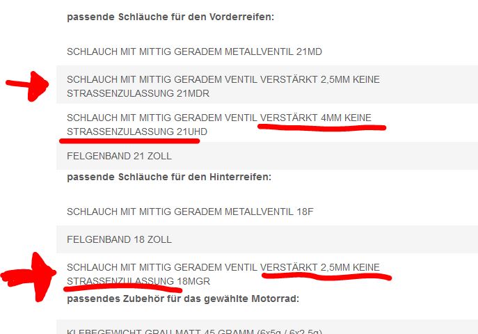 Ich habe vor kurzem Reifen im Internet gesucht und auch nach passenden Schläuchen.