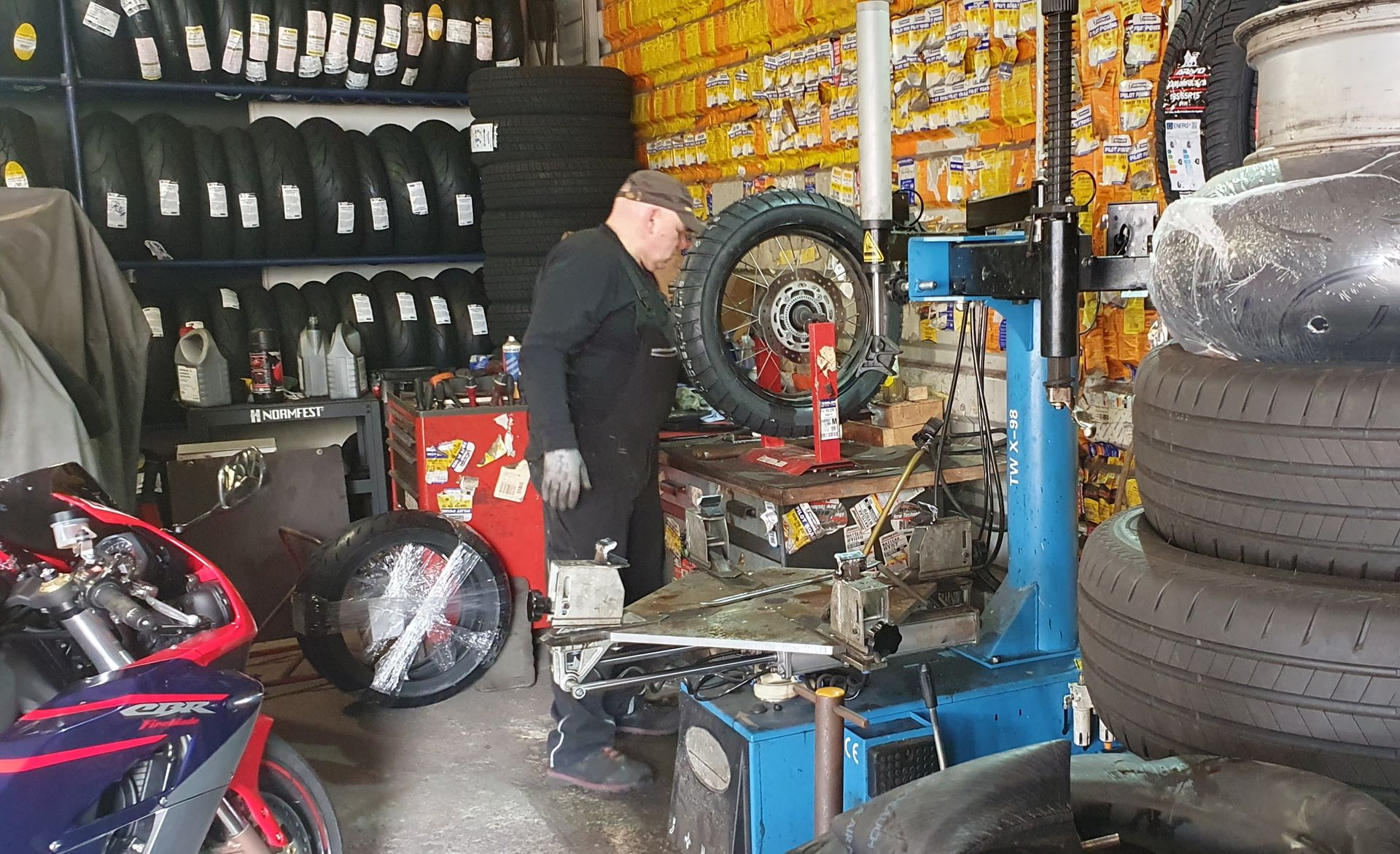Hier stehen unsere beiden Motorräder davor.