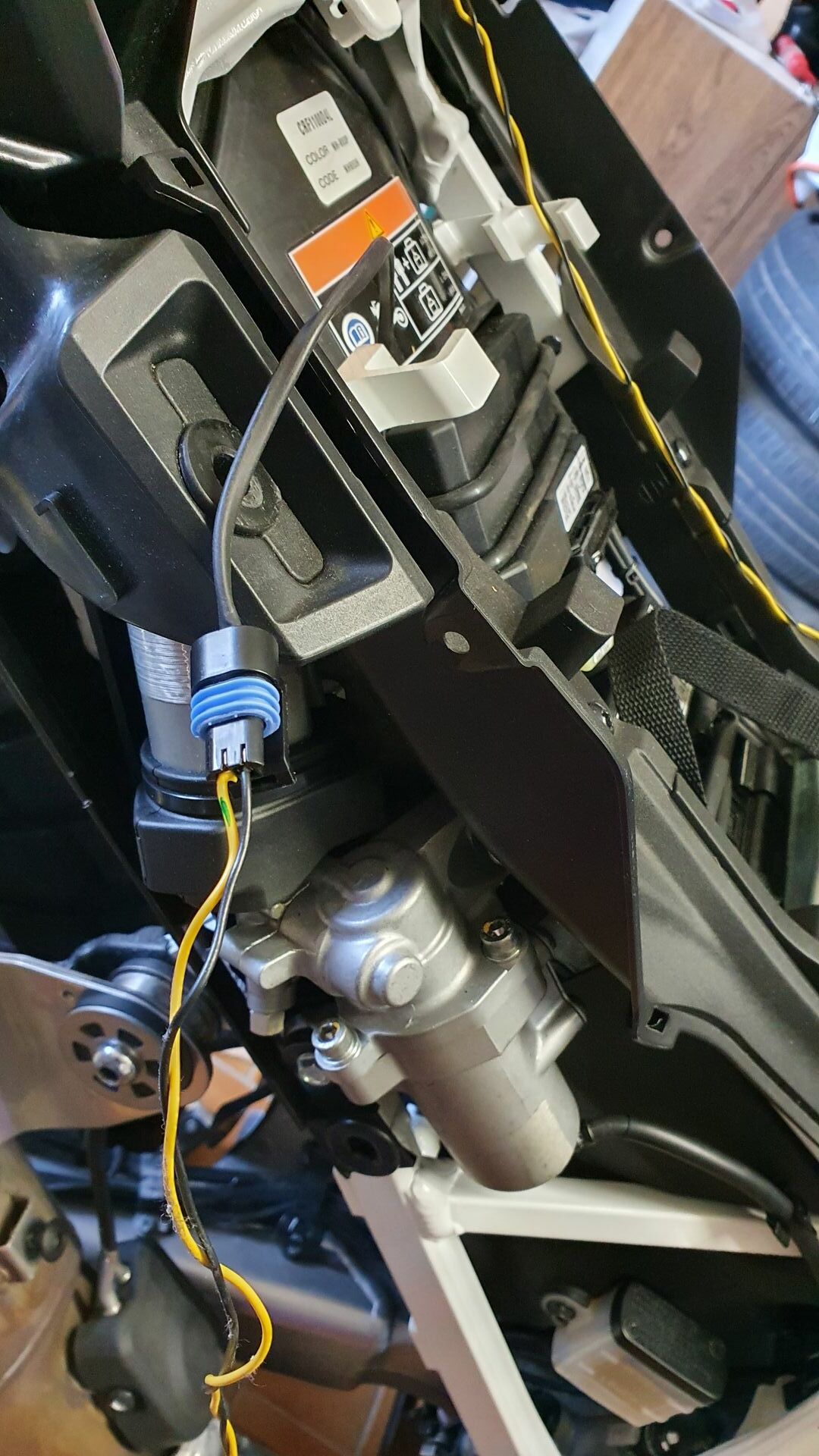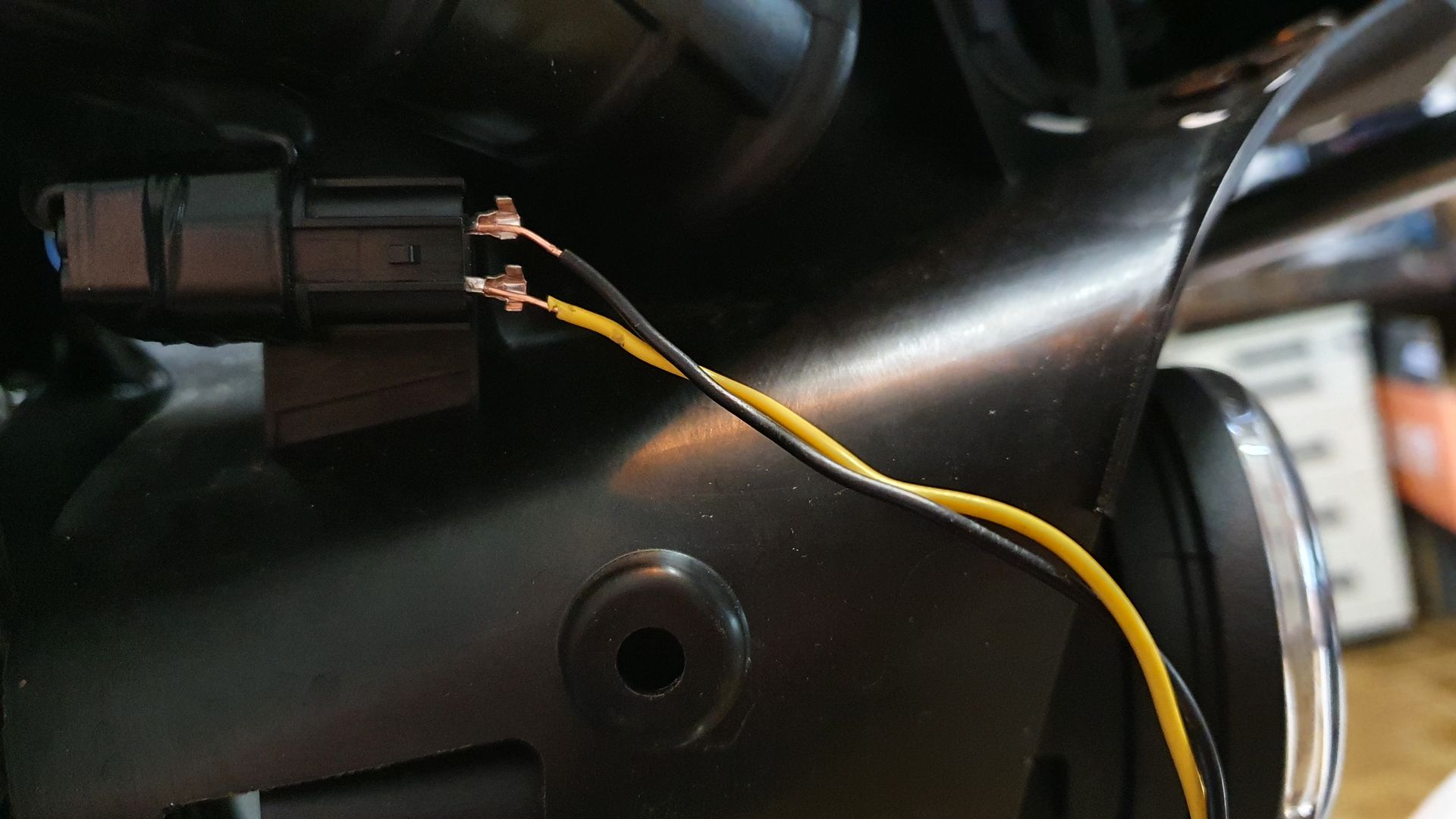 die habe ich einfach verlängert und nach vorne an die originalen Stecker unter der Verkleidung gehängt.