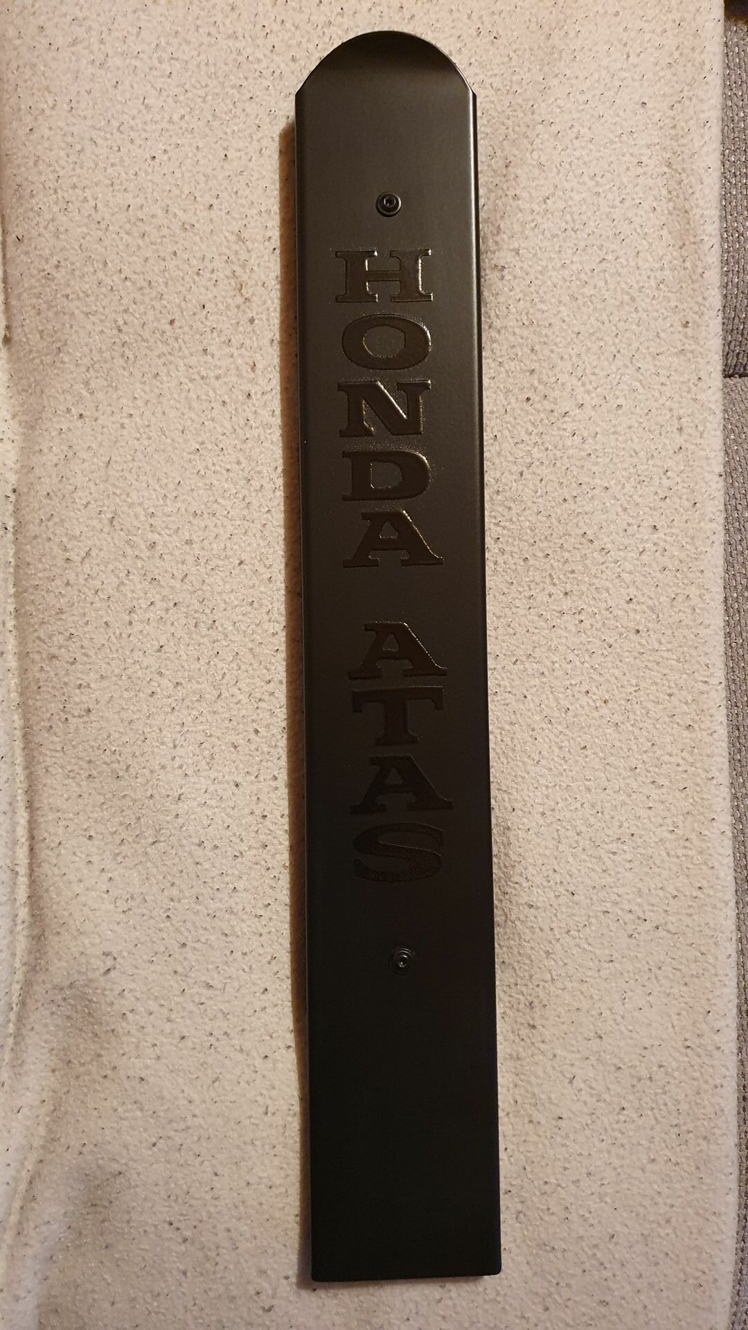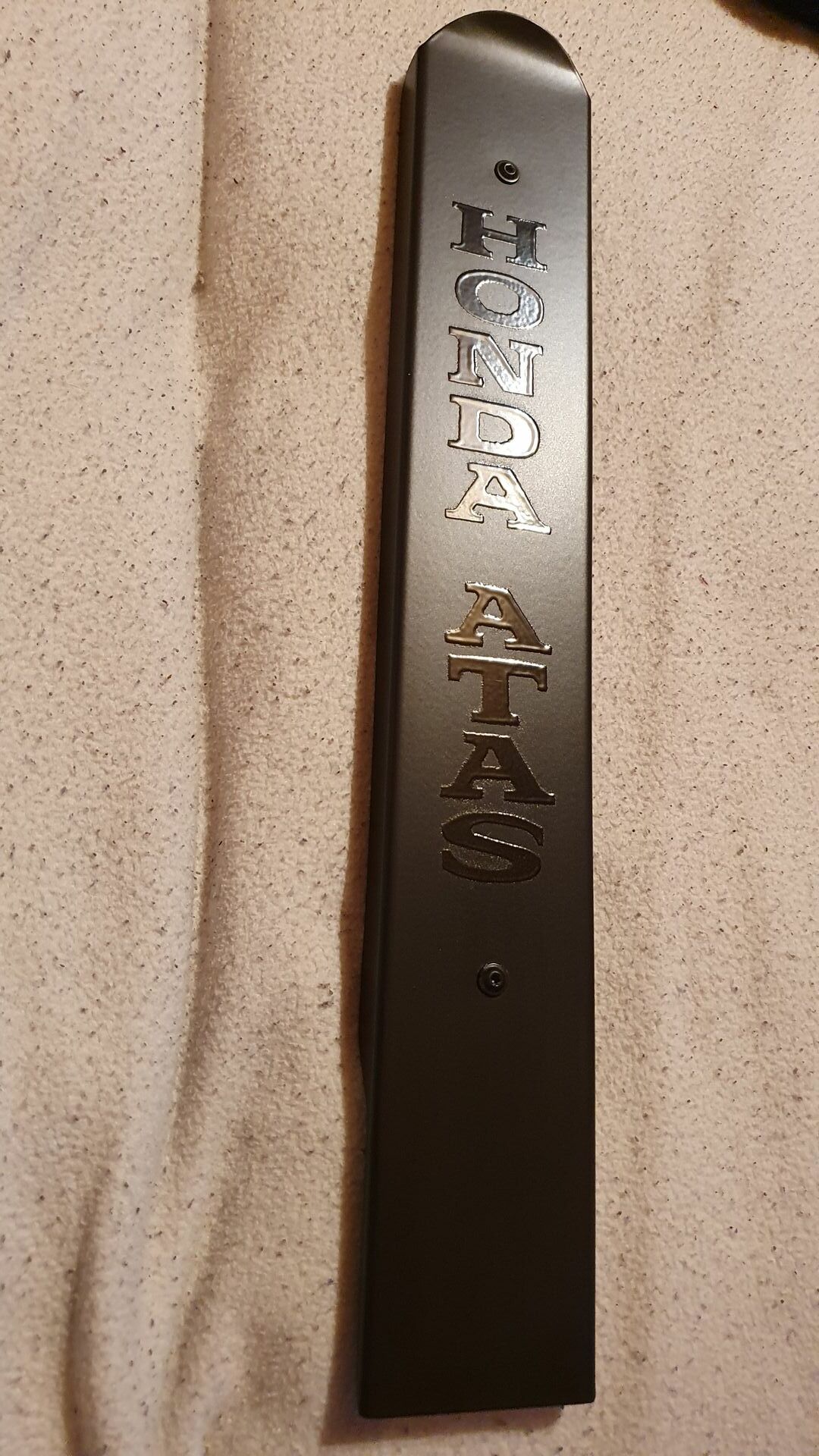 Man kann den Schriftzug in Edelstahl belassen und Rest schwarz pulvern.