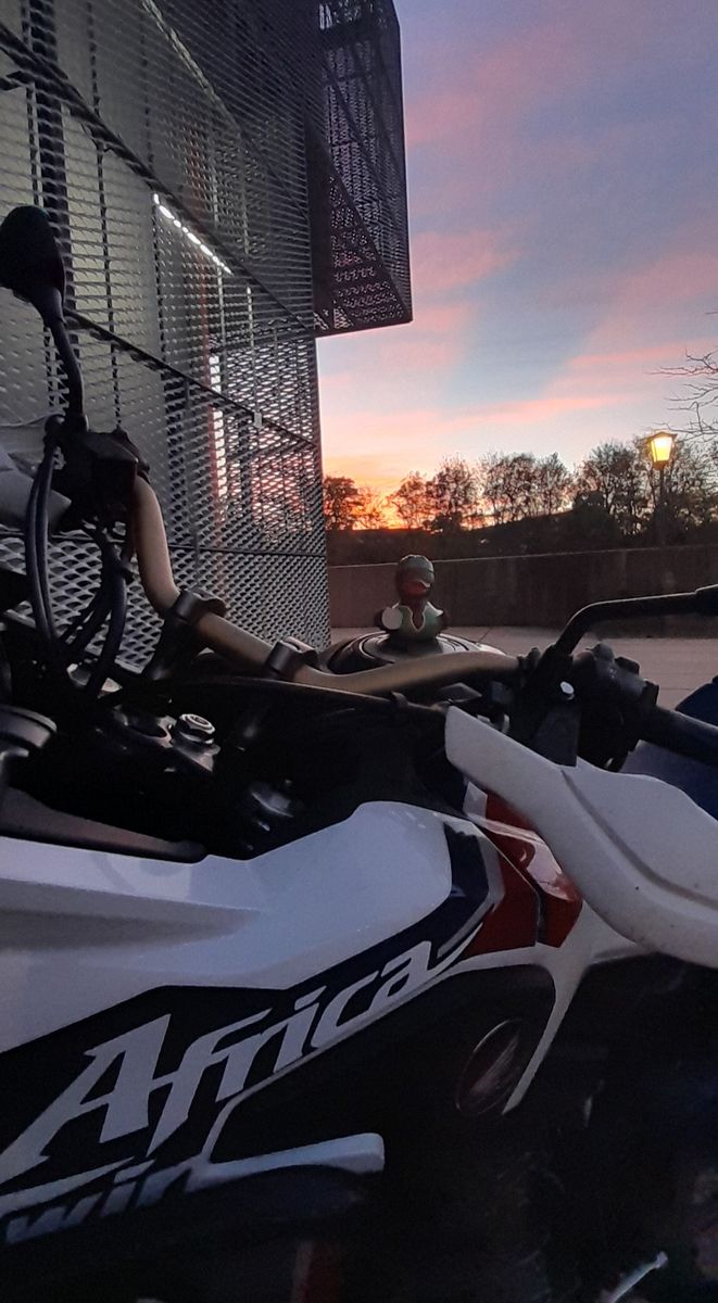Twinner Der kleine schwarze Punkt über dem Motorradsattel ist das Flugzeug. Können auch gerne bei einem Bier bequem auf meiner Terrasse den landenden Fliegern zuschauen. Da ist der Hintergrund leider nicht ganz so spektakulär.
