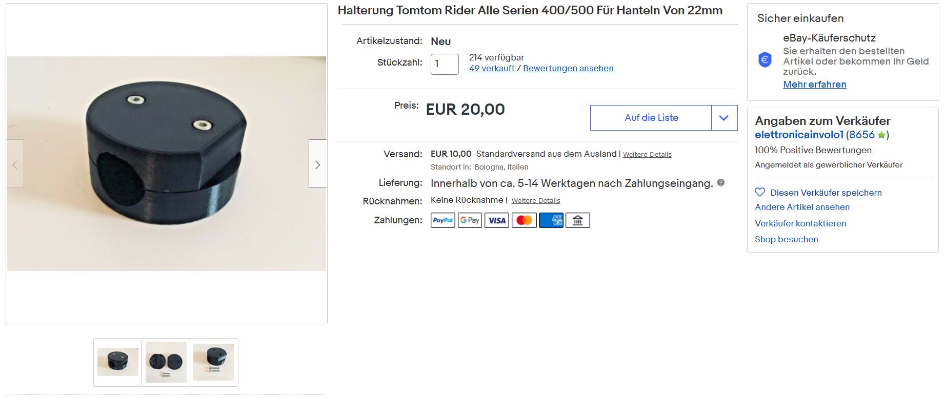beide Teile, die Stahlhalterung aus China und die Kunststoffhalterung aus Italien, sind aktuell nicht lieferbar.