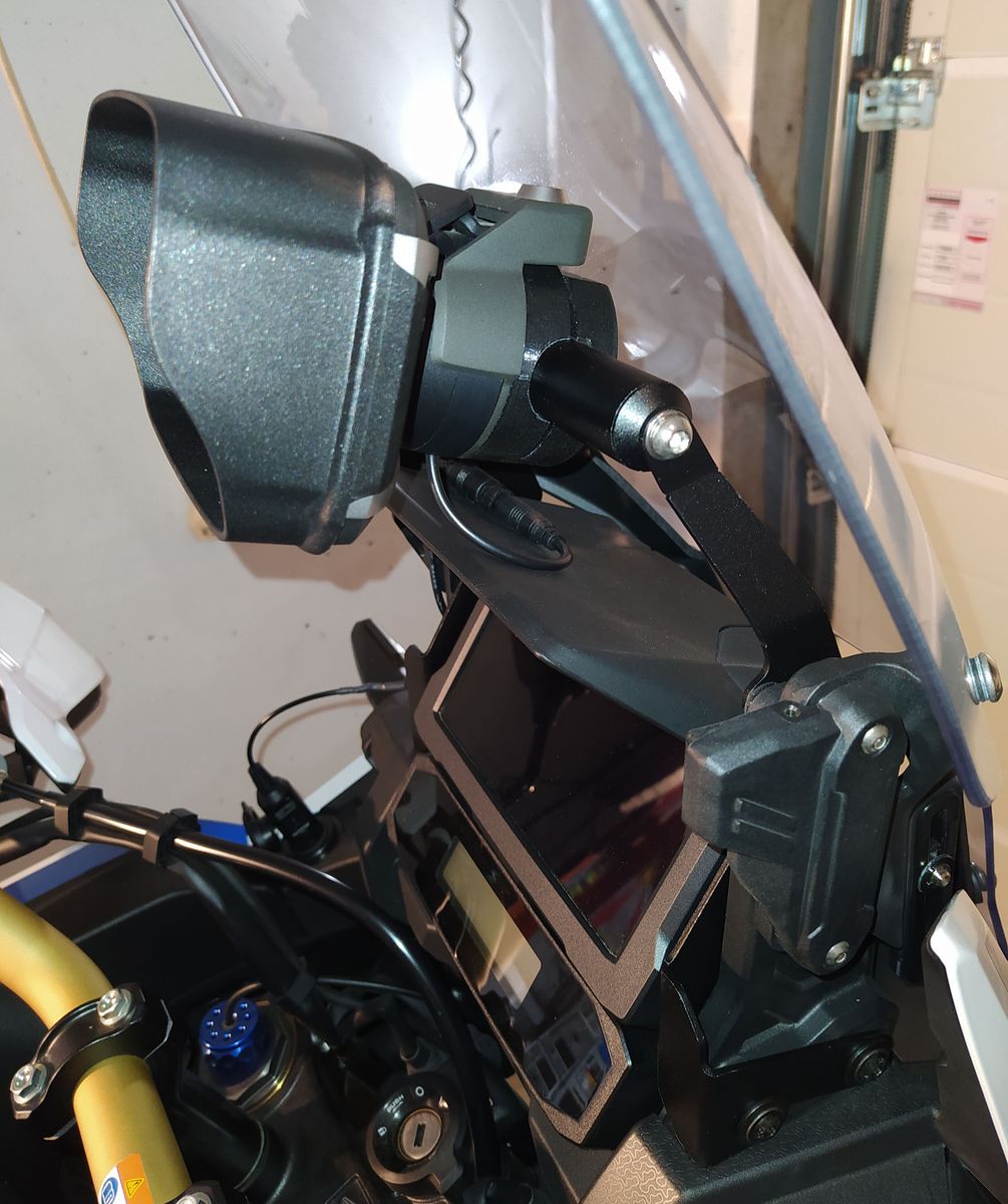 Montage über dem Display, damit man den Blick auf die Straße nicht verliert.