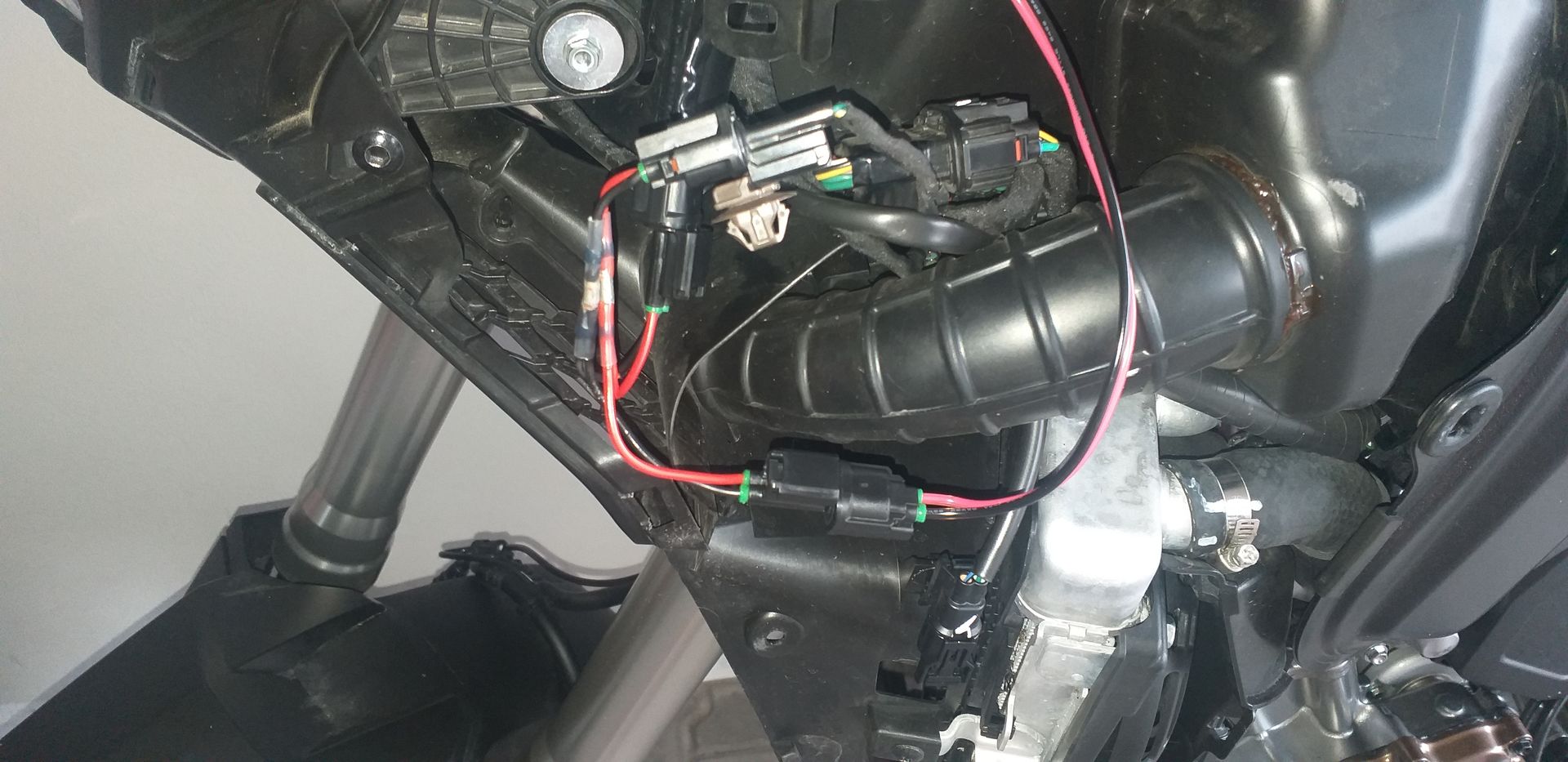 Habe mir ein Zwischenstück mit HX06 Stecker gebaut und zwischen Motorrad und Zusatzsteckdose auf der linken Seite eingebaut, wo ich das Navi und die Zusatzsteckdose angeschlossen habe. Somit habe ich Zündungsstrom auf dem Navi.
