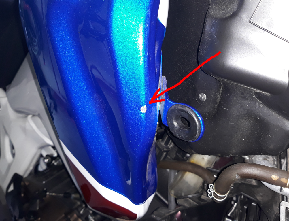 Und wenn man den Tank abbaut, um den Benzinfilter auszuwechseln (Rückruf wegen Fremdkörpern .... die bei der Montage nicht ausgewaschen wurden) und dann den Tank eben nicht auf eine solide Unterlage absetzt ..... dann passiert das.