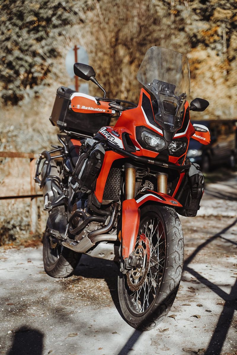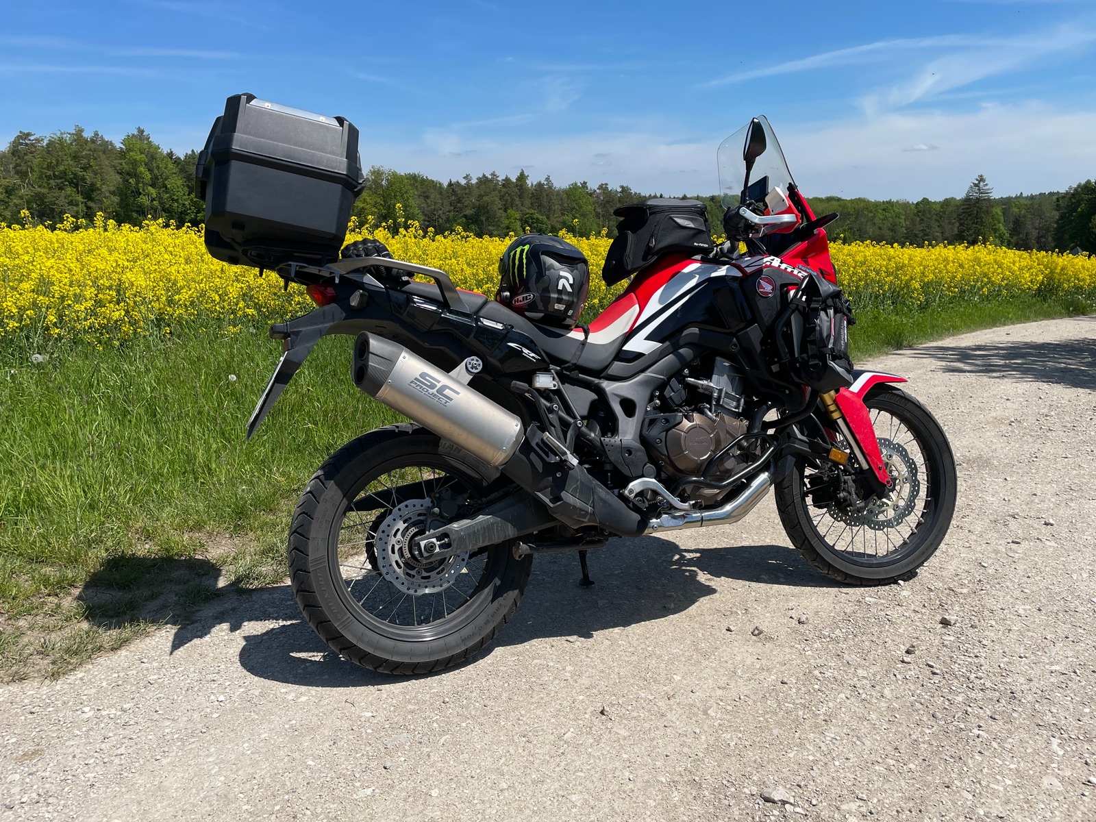 Zur Ausstattung gehören Originalheizgriffe, Sturzbügel von Touratech und eine USB-Steckdose, die hohe Touringscheibe von Honda und auch noch die normalhohe Scheibe. Die Kofferhalter und Koffer sowie das Topcase bleiben bei mir, da sie an der DCT verbaut werden. Der SC-Project könnt gg Aufpreis übernommen werden.