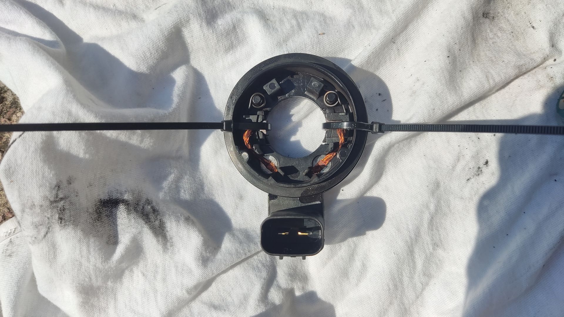 PS: Eine Folie hatte ich keine für die Bürsten des Motors zurück zu drücken aber mit dünnen Panduitbändern ging es auch. Siehe Bild! Der Kohleabrieb im Schaltmotor ist leider ein Schwachpunkt im ansonsten genialen DCT das ich seit 2016 sehr gerne fahre!