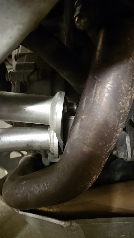 Abgesehen davon hat nur die Gabelverkleidung rechts (also leider der gesamte Kotflügel) an den beiden Montagepunkten rechts unten dran glauben müssen.
