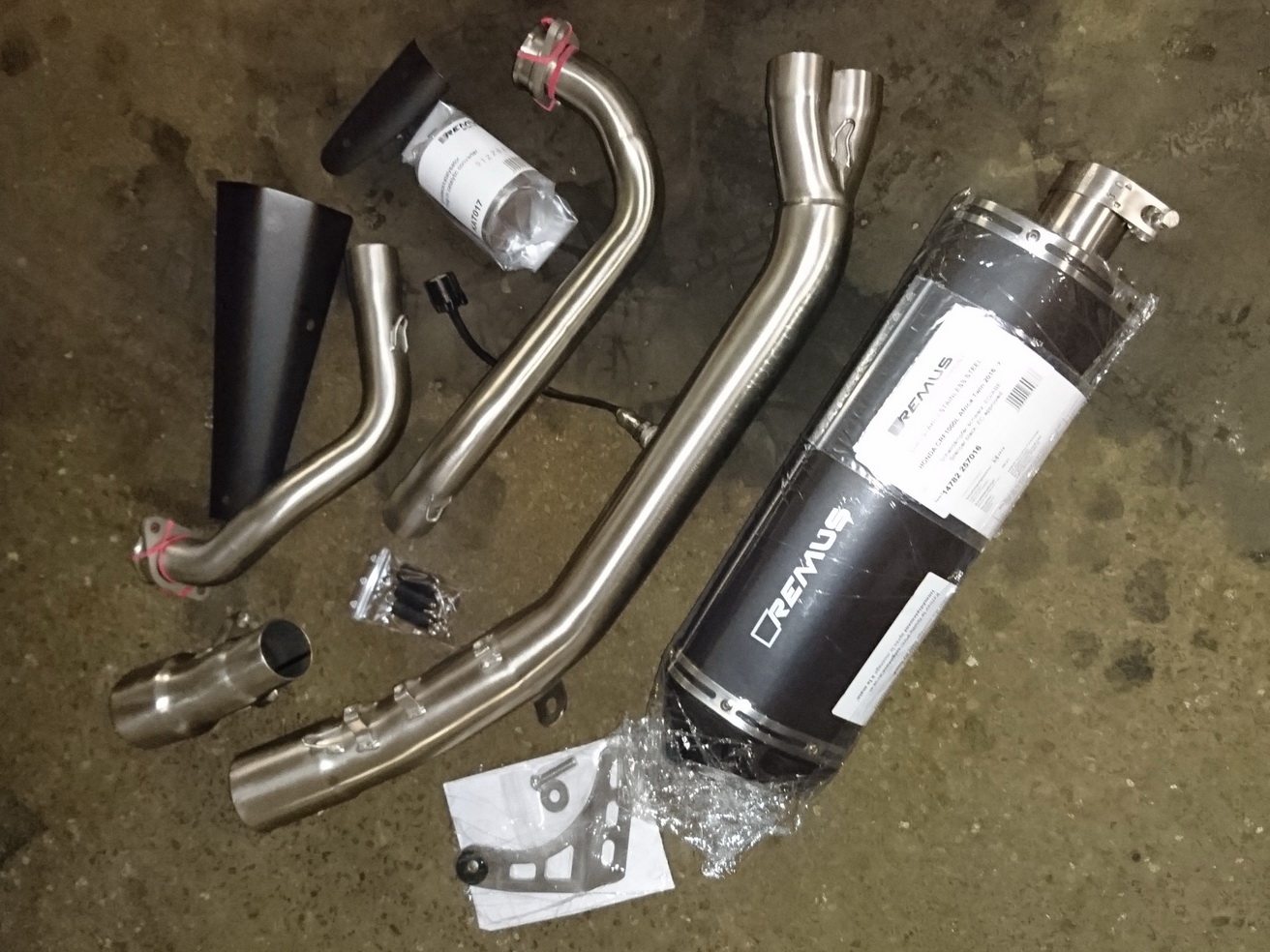 Okami in Edelstahl schwarz, Krümmer und Kat-Einsatz heute gekommen und montiert.
