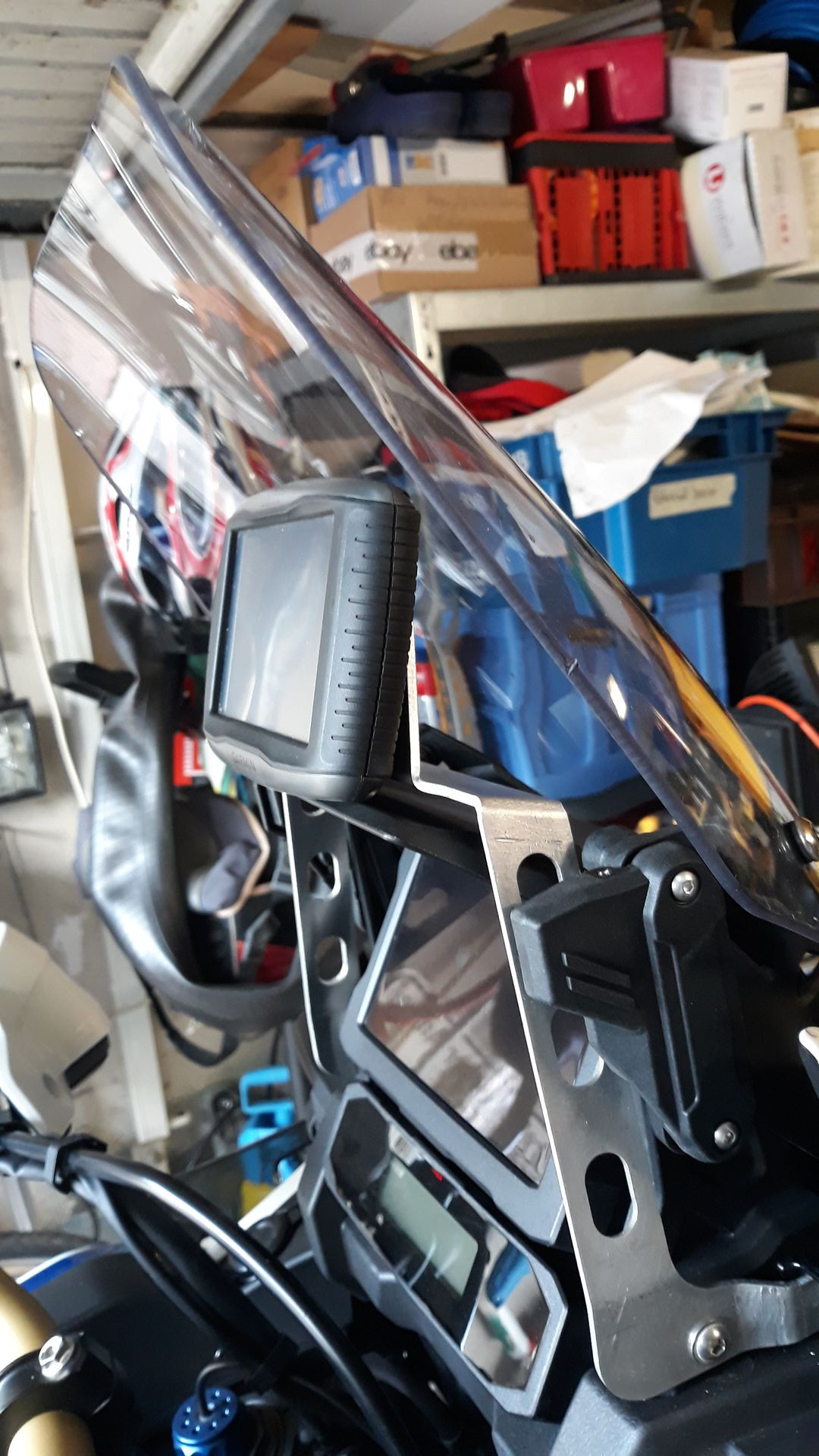 zuallererst hatte ich mich auf das AndroidAuto gefreut bis ich feststellen musste, es geht nur Kabelgebunden aufs Display. Dies bedeutet ein nicht wasserfestes Telefon irgendwo anzubringen mit nicht wasserfester USB Verkabelung, dieses bei Stops abzunehmen usw. Ein Tankrucksack o.ä. kam auch nicht in Frage. Ein wasserdichtes Staufach mit USB Anschluß in der Verkleidung wäre seitens Honda eine tolle Verbesserung. So kam es also zu der Entscheidung mein altes Zumo mit dieser absolut tollen Entwicklung des Forums wieder anzubauen. Telefonieren kann man ja trotzdem über die drahtlose BT Kopplung.