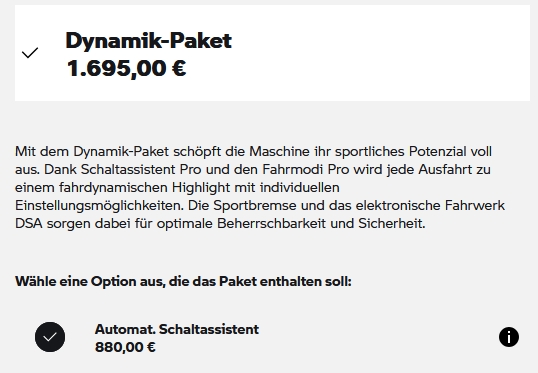 ich bin von der SD06 (2016) auf die SD08 (2020) und letztes Jahr auf die SD13 (2024), jeweils mit DCT, und jetzt auch mit dem elektronischen Fahrwerk umgestiegen.