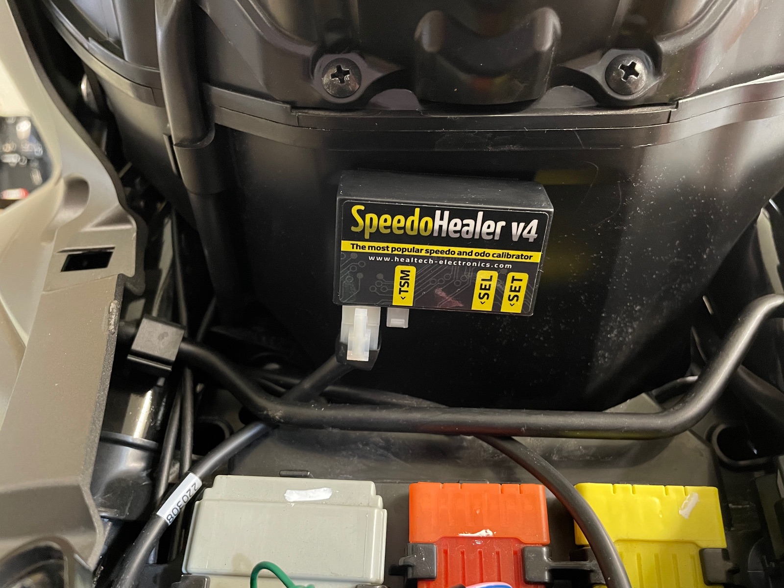 Man muss nicht das ganze Möpi auseinander bauen. Es reicht wenn man die Windschutzscheibe abbaut, und evt. die Verkleidung vom Luftfilter abbaut, je nachdem wo man den Speedohealer plazieren will. Den Stecker vom Kombiinstrument abziehen und unter der Halterung vom Windschild durchziehen. Man hat dann ca. 13 cm Kabelstrang zur Verfügung wo man die 4 Kabel in den Kabelstrang einpflegen kann. Mit den mitgelieferten Stromdieben anschließen, einstellen und alles ist gut.
