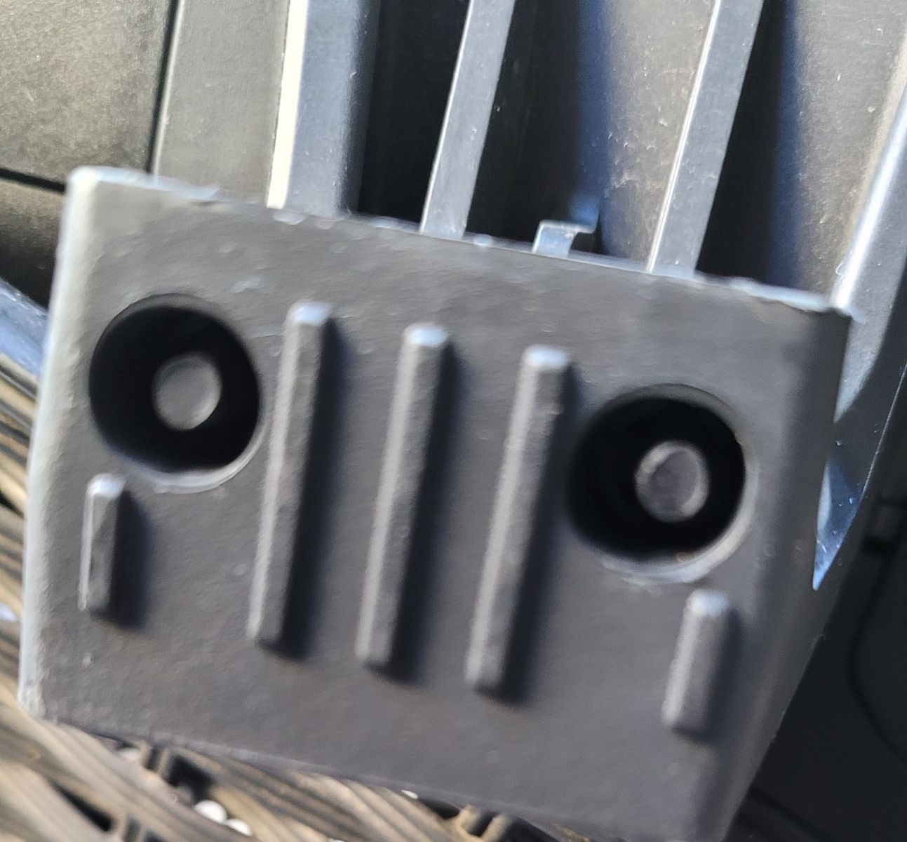 Die Teile sind an den oberen Haltern der Koffer geschraubt und mit zwei Gummi-Nippeln durch 2 Löcher fixiert.