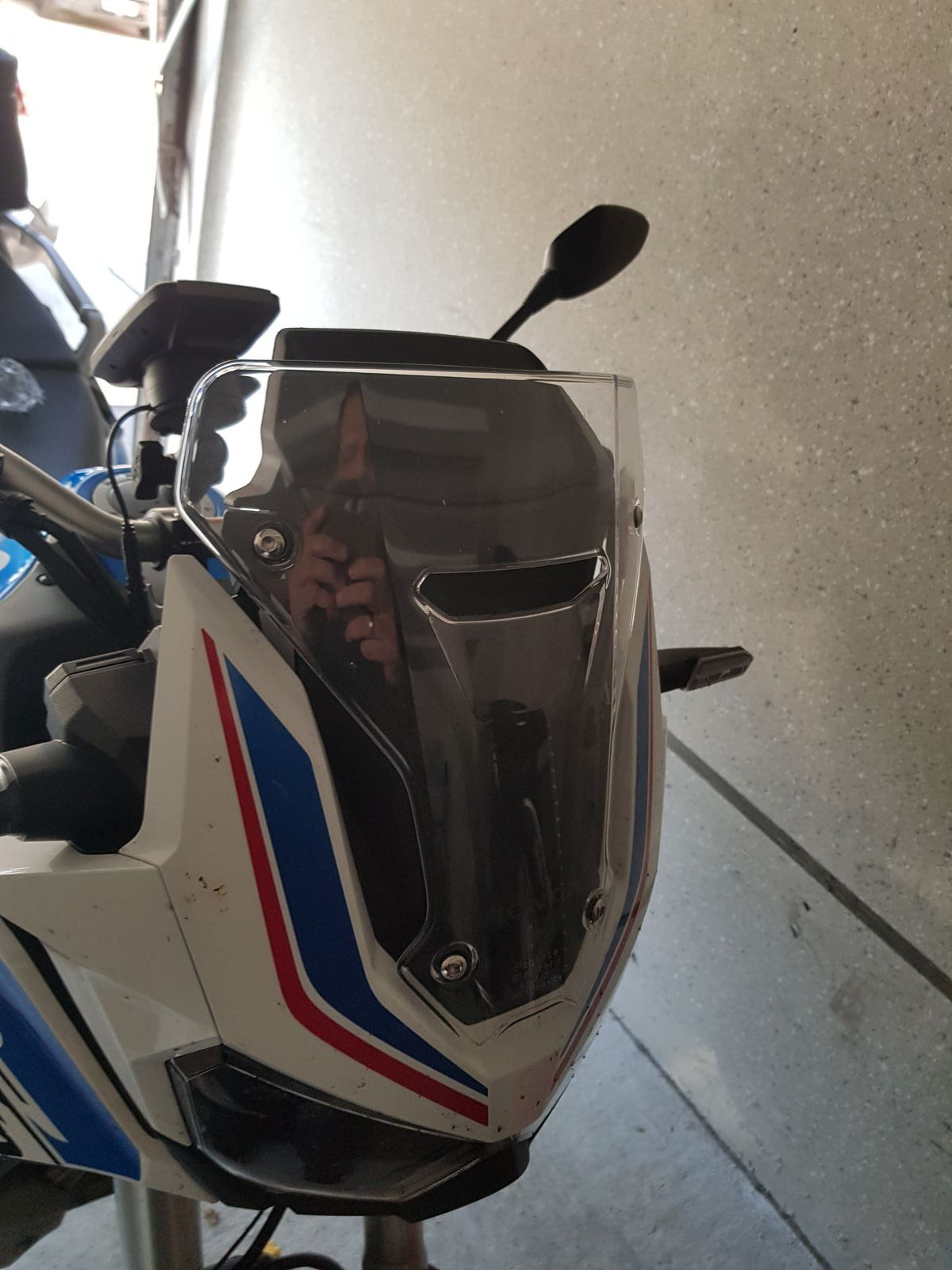 hier wie versprochen die Bilder des Touratech Windschildspoilers Evo transparent ...