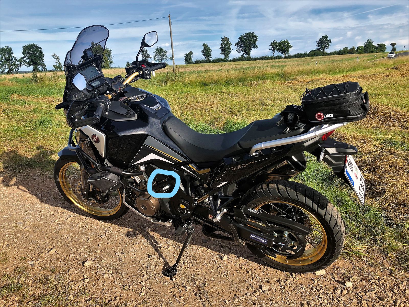 Die Fahrzeuge bei mir haben alle, einschl. AT einen passenden Ladestecker montiert. Bei der AT habe ich diesen mittels Klett auf dem Sturzbügel links fixiert.