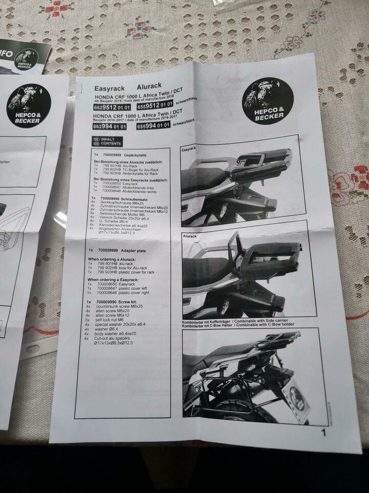 Hepco Becker Alurack Topcaseträger für Africa Twin CRF 1000, ist erst ein halbes Jahr alt.