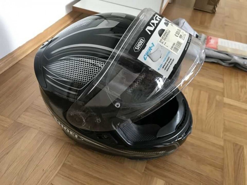 Shoei NXR für meine Frau. Dieses Modell gibt es zwar aktuell nicht mehr, aber den konnten wir zu einem absoluten Schnäppchenpreis bekommen.