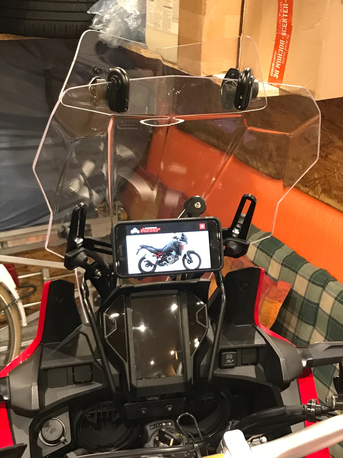 An den Touratech Navihalter kommt meine SP Connect Handyhalterung zwecks Navigieren.