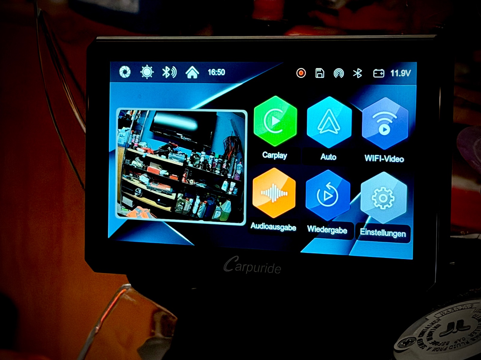 Das Carpuride lässt sich über die Bedienereinheit ausschalten. Die Dashcam speichert im Loop-Modus.
