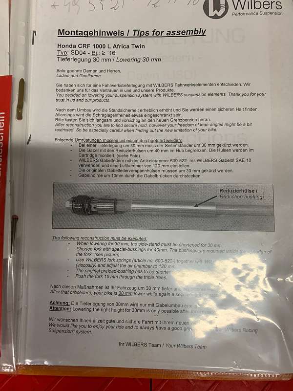 Wilbers stossdämfer- Gabelfedern- seitenständer- Montage Anleitung - wie auf den Bildern