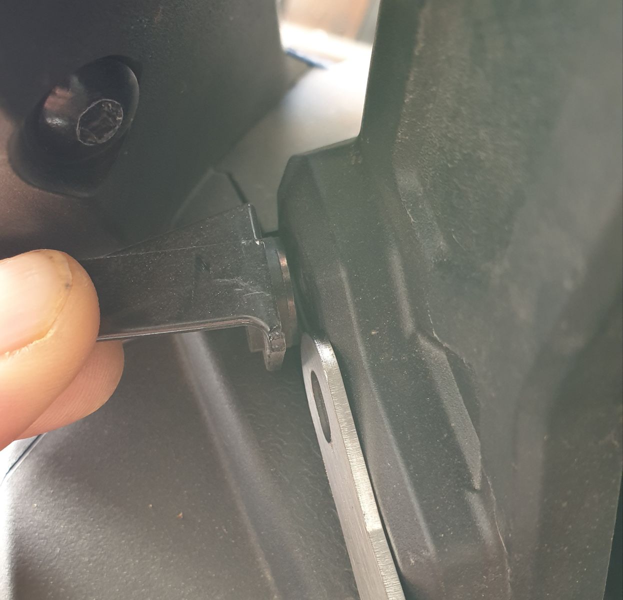 Meinst Du ich soll den Windabweiser zwischen Forumswinkel und Cockpit verbauen? Dann wäre der Abstand doch ein anderer im Vergleich zur vorderen Schraube.