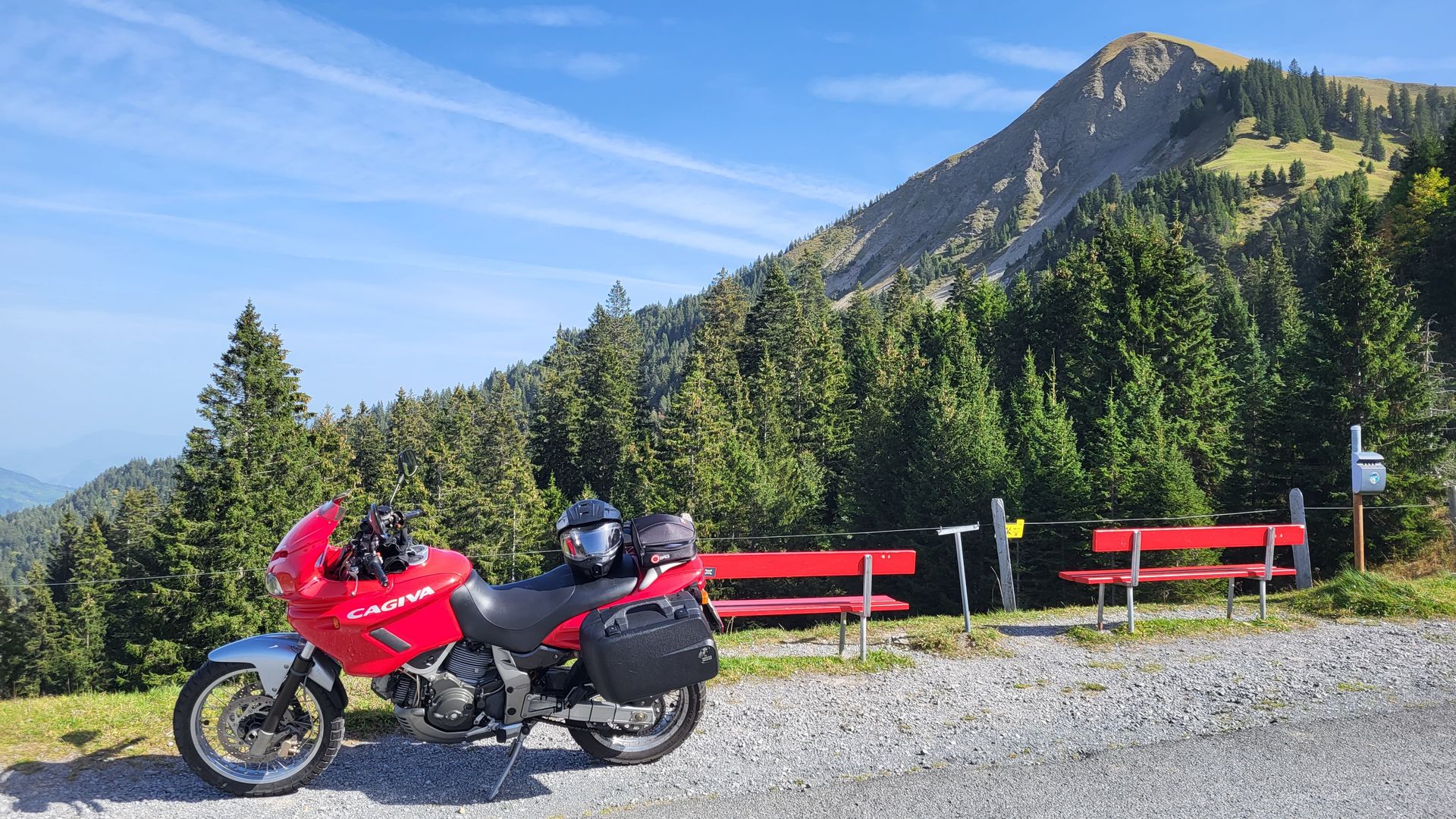 Und dann, leider doch mit Schlauchreifen, eine Cagiva Gran Canyon 900 iE. Die macht mir aber grosse Freude, ich fahre damit mindestens so gerne wie mit der AT wenn nicht noch lieber. Weg mit dem ganzen Elektronikballast...