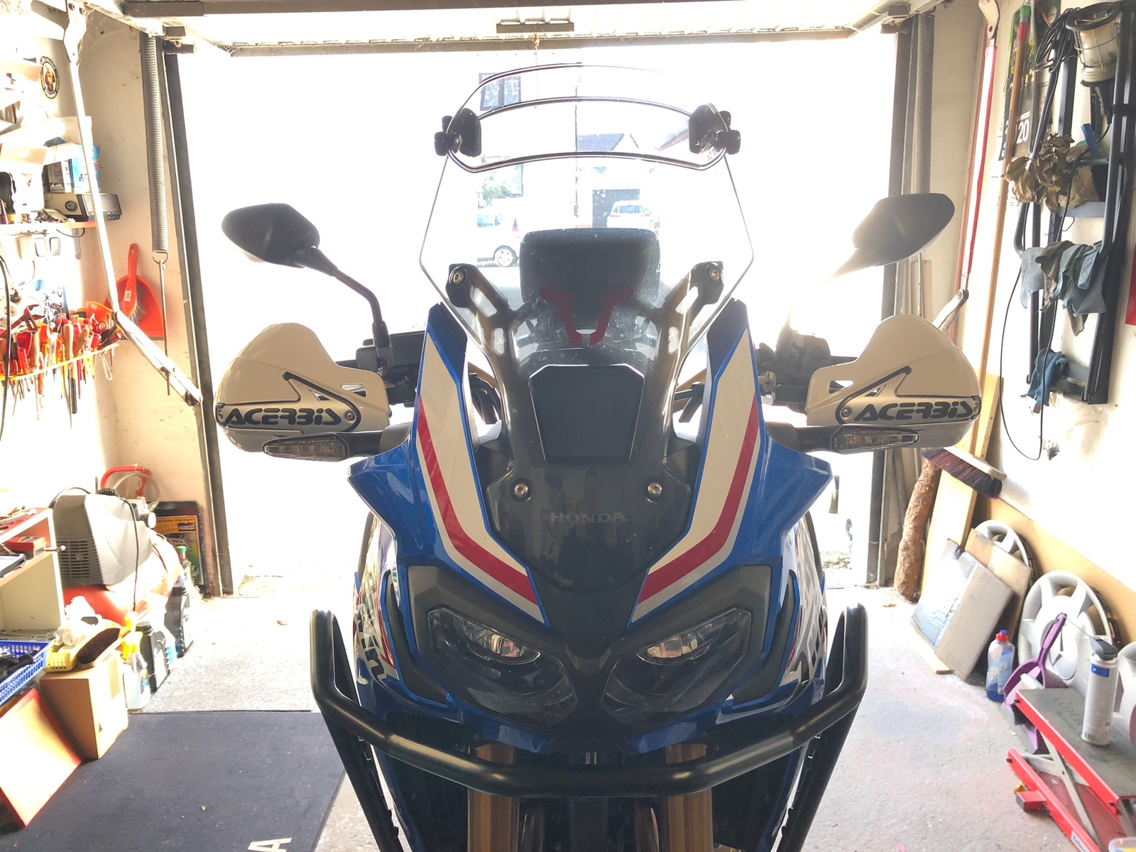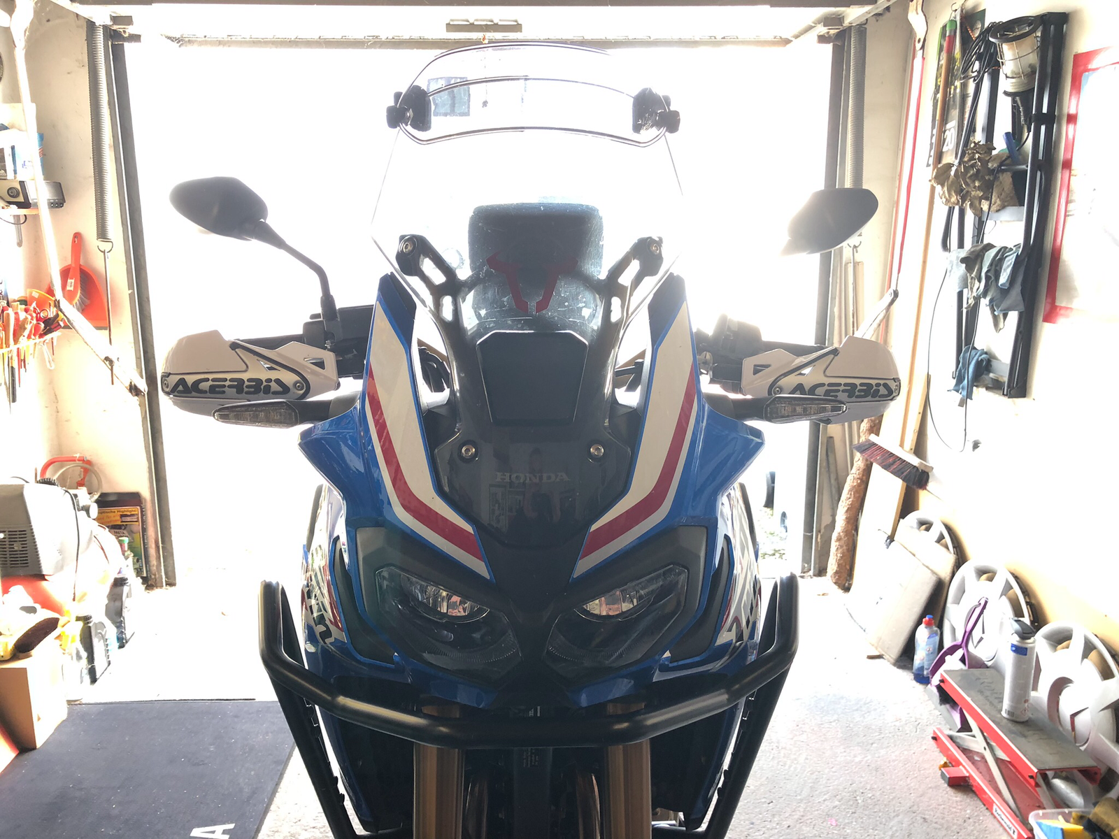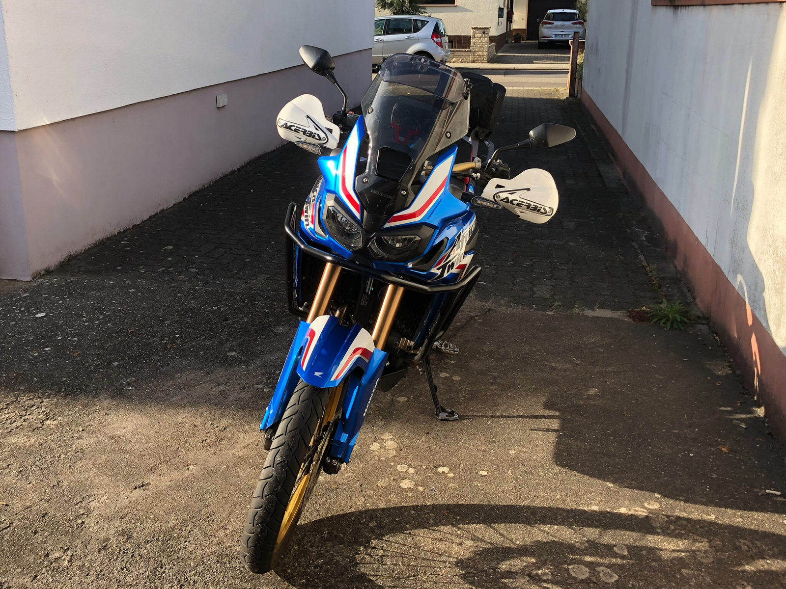 ..heute habe ich die großen ACERBIS Griffschalen montiert um für kühlere Tage gerüstet zu sein. Die Griffschalen waren vorher schwarz. Ich habe sie weiß lackieren lassen. Ich weis nicht, irgendwie sieht es scheixxe aus.
