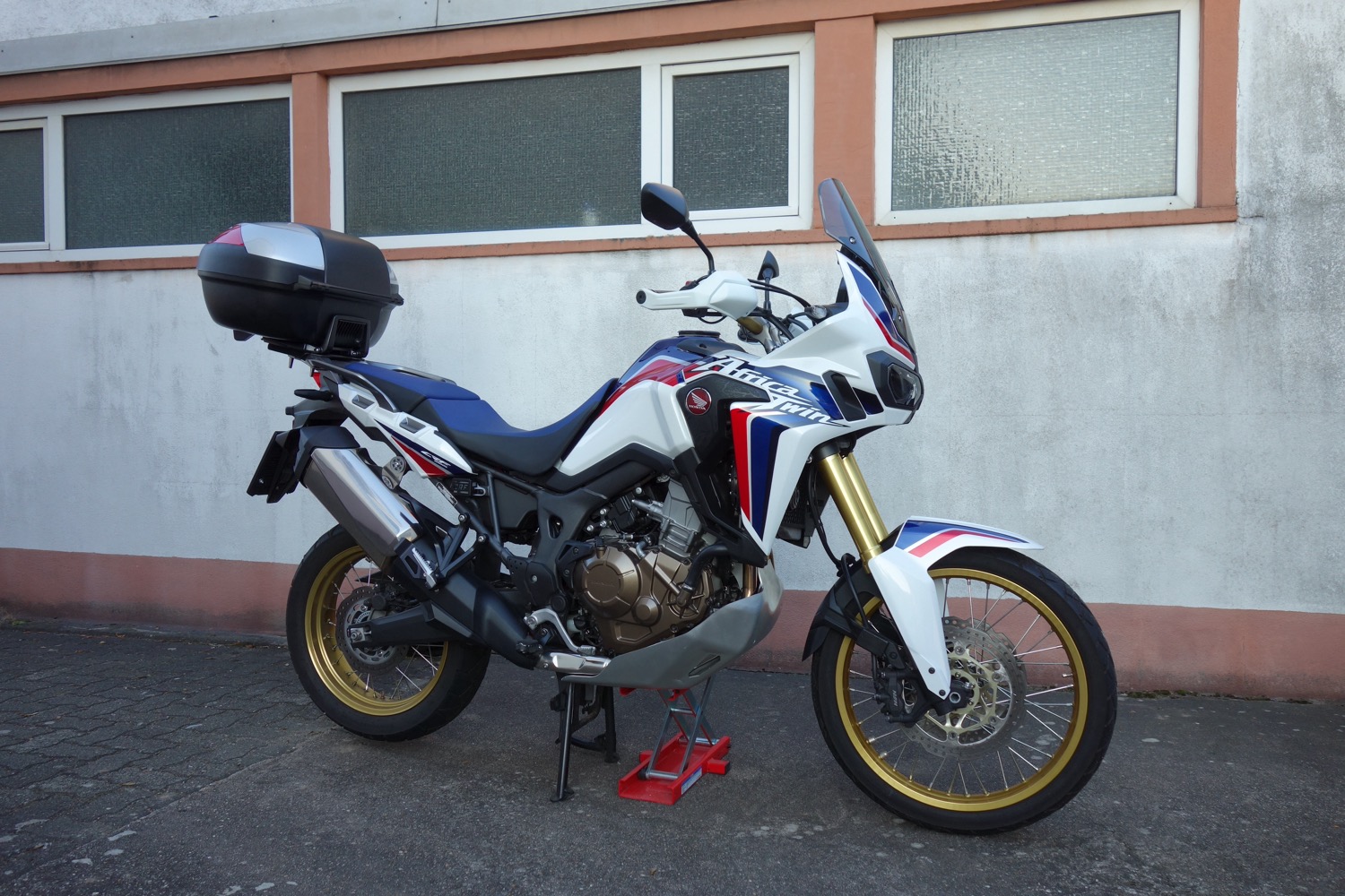 ..6 Honda Aufkleber auf den Koffern (unter anderem) lassen keinen Zweifel am Hersteller aufkommen. Da fällt mir der Spruch ein ,,stolz wie ein Spanier ,,