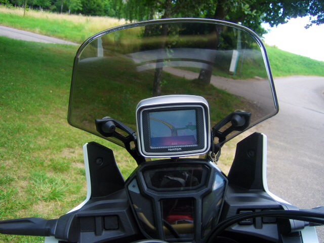 ..habe mir das Navi auch hinter die Scheibe montiert. Bei der Gelegenheit gleich gegen das Getönte Windschild montiert.