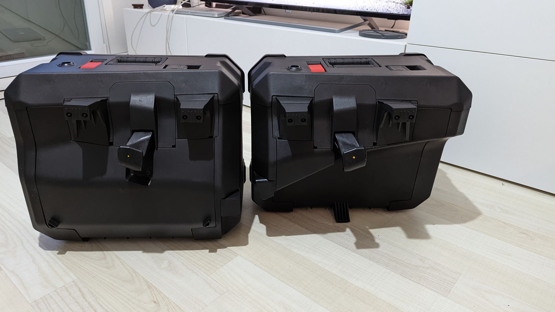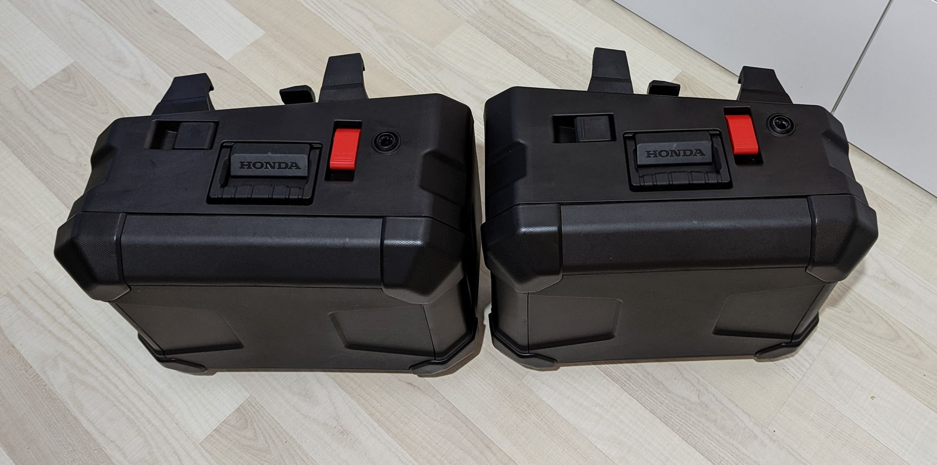 ich möchte hier meine Original Honda Seitenkoffer (08L71-MKS-E00) verkaufen. Diese können an den Modellen der CRF1100 montiert werden und hinterlassen keine weitere Aufhängung/Teile/Gestänge, wenn man sie demontiert. Die Breite der Koffer geht nicht über den Lenker hinaus.