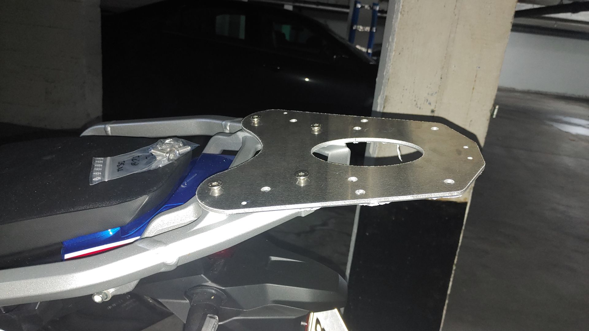 Für die Befestigung an der Gepäckbrücke müsste man aber noch was dazu basteln, da dort ja keine Löcher für Befestigungsschrauben sind.