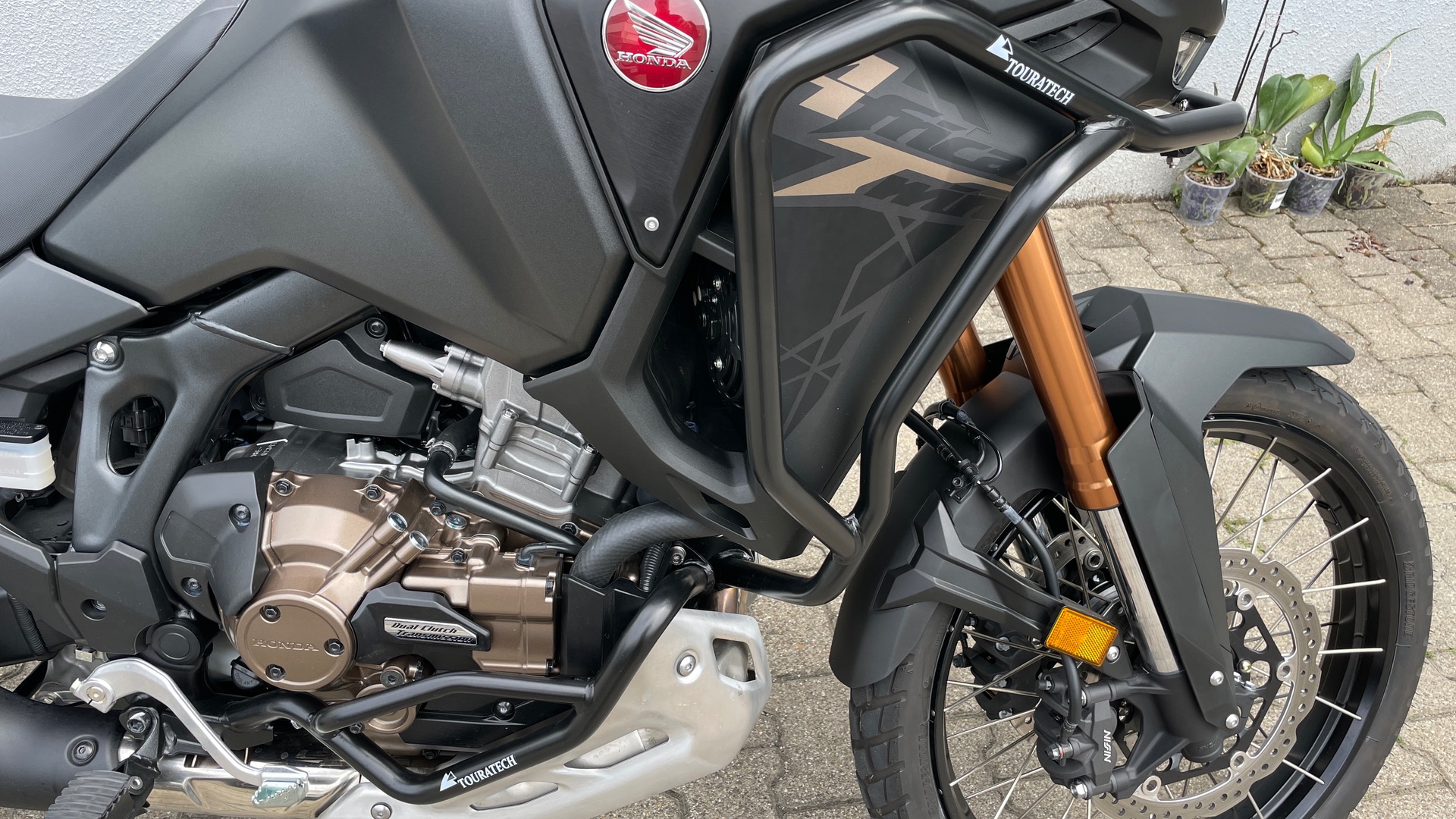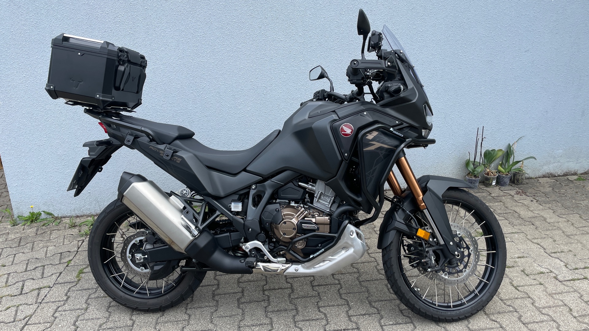 • Schwarzer Touratech Sturzbügel inklusive Motorschutzbügel
