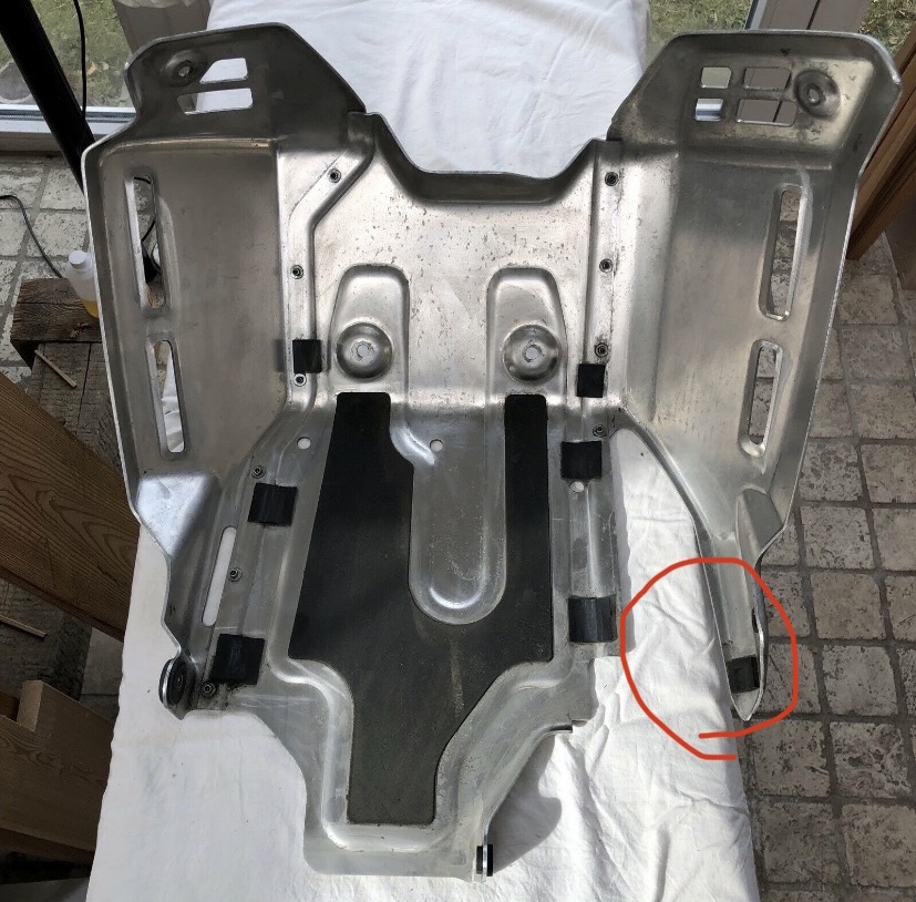 Nun stelle ich mir die Frage, ob der originale größere Motorschutz der ATAS von den Schraubpunkten auch an der normalen AT passen würde. Ist hinter der Auspuffrohr-Abdeckung der normalen AT nochmal ein Schraubpunkt versteckt für die hintere rechte Schraube des größeren Motorschutzes der ATAS? Die beiden Bilder sollen meine Frage nochmal veranschaulichen.
