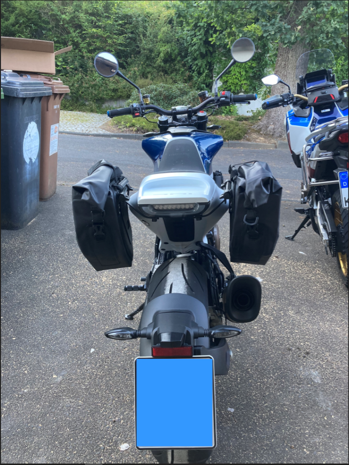 Gepäcktaschen für den Reiseflitzer meiner Frau. Damit kratzen wir an den 170 Kg im fahrfertigen Zustand.