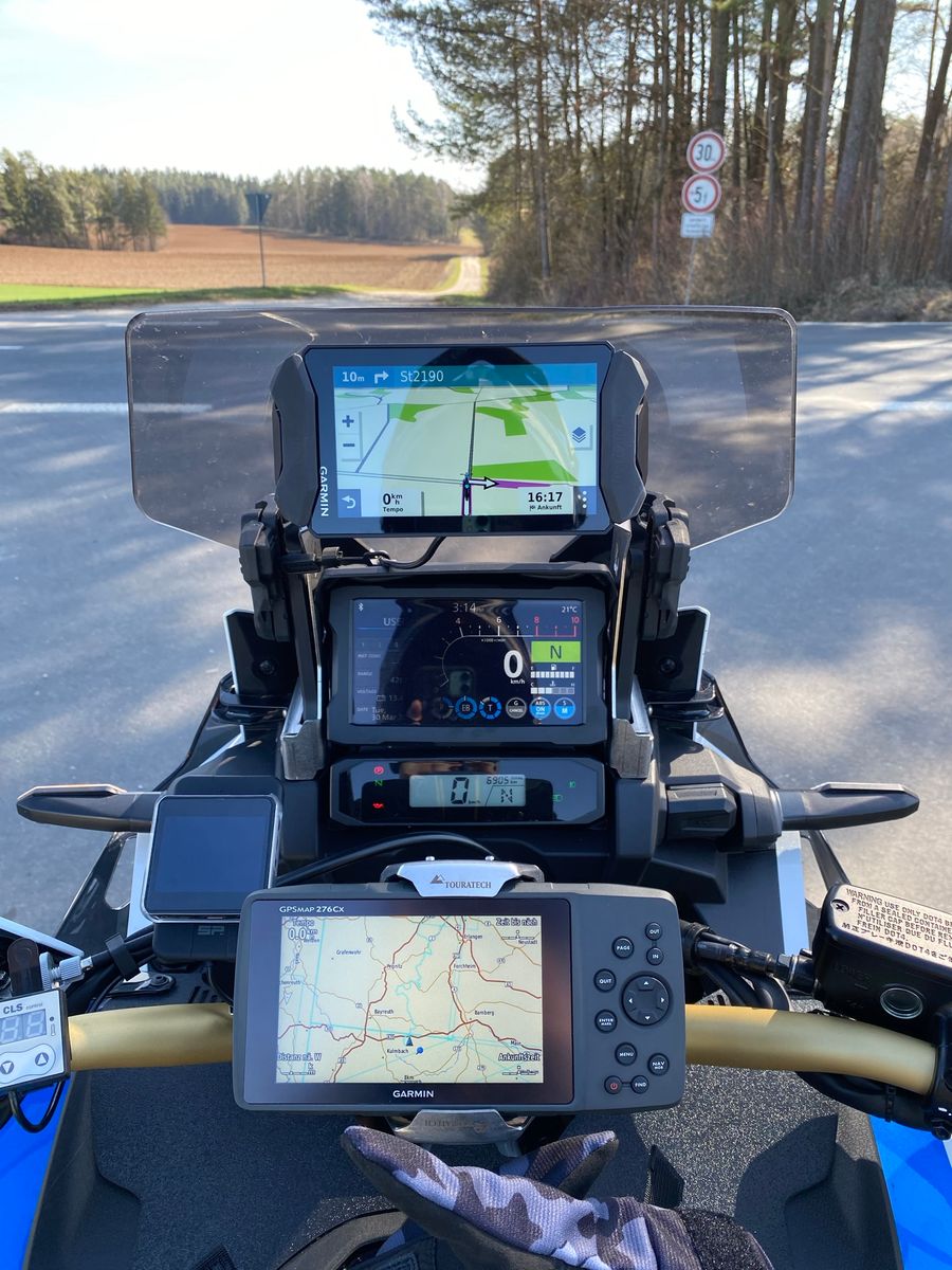 Auch wenn ich den lieben Bernd nicht persönlich kenne (O-Ton Lele) ... es erschliesst sich mir absolut nicht, wie man *zwei* (neumoderne) Navis auf dem Motorrad haben muss ... noch dazu, wenn eines so positioniert ist, dass man den Blick von der Strasse nehmen muss, um draufzuschauen.