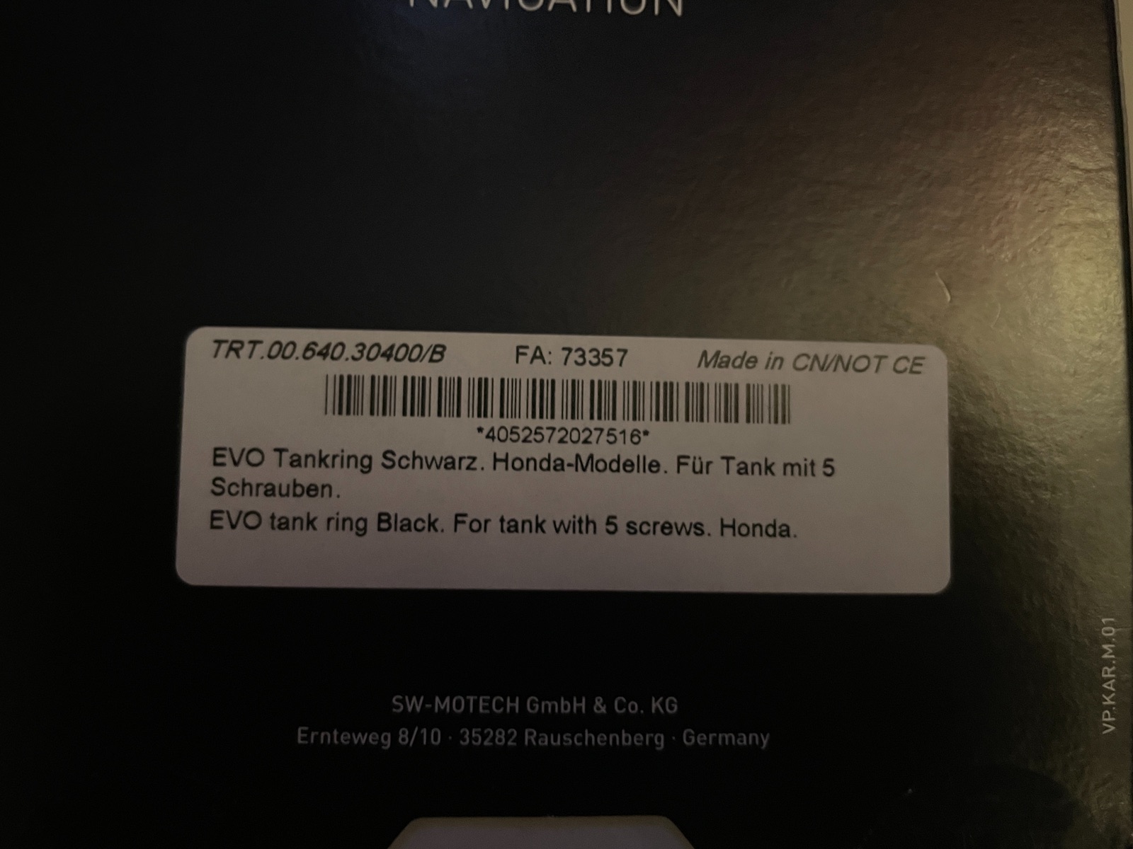 Der Tankring ist derzeit auf einer CB500F montiert, passt aber laut SW motech auch auf die 1000er und 1100er AT.
