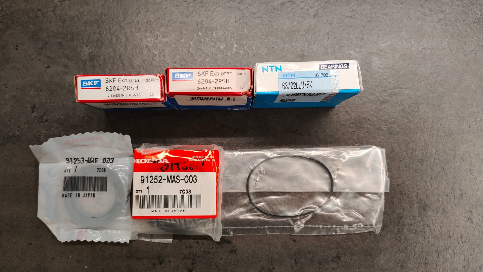 Im Lagersatz sind hochwertige Lager und die Original Honda Staubkappen enthalten.