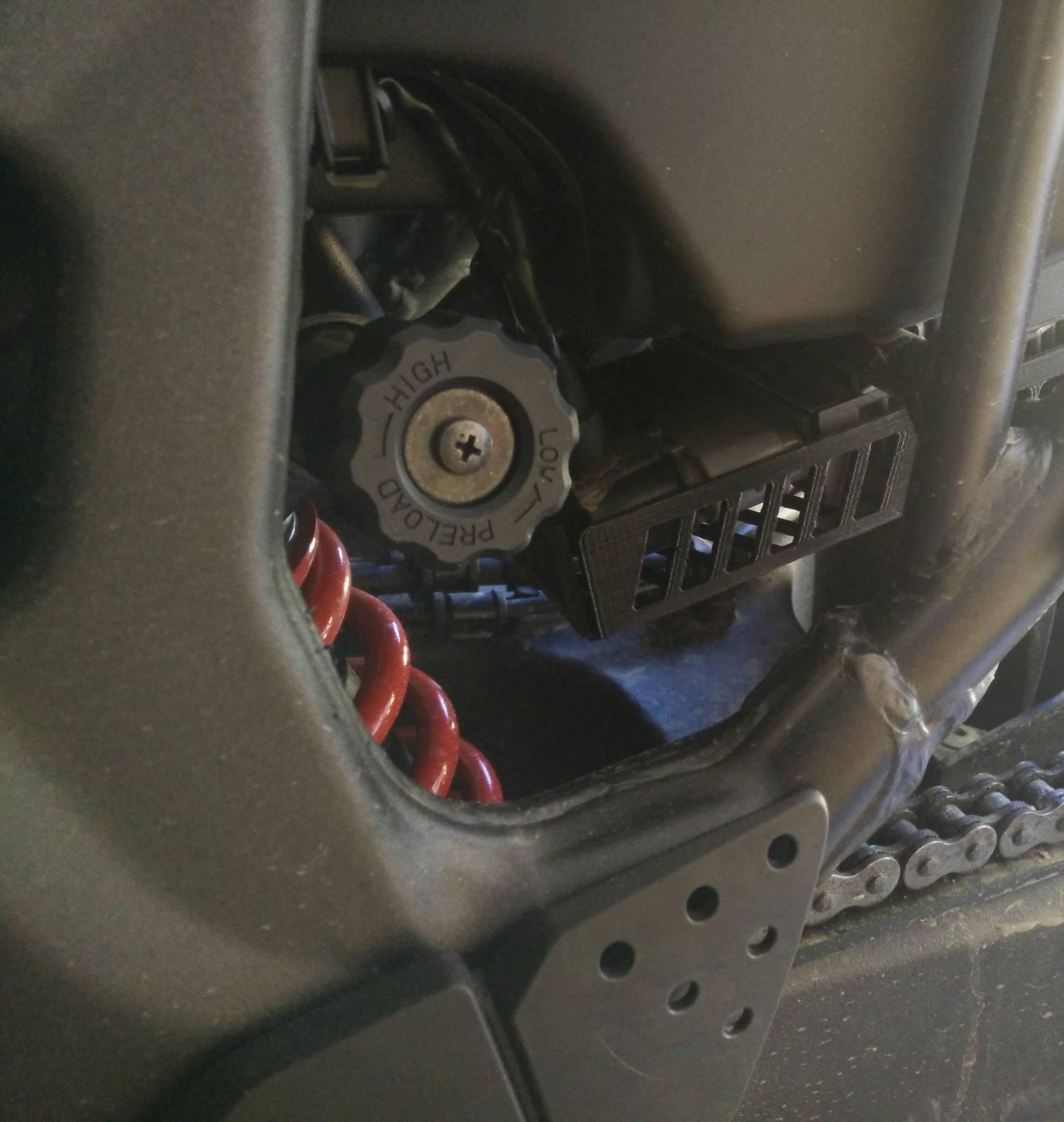 Der Schutz wird aus 2mm dickem Aluminiumblech gefertigt. Es besteht die Möglichkeit, ihn in Naturfarben oder in einer der folgenden Farben zu eloxieren (schwarz, blau, rot, grün, violett und gold, alles in Mattoptik).