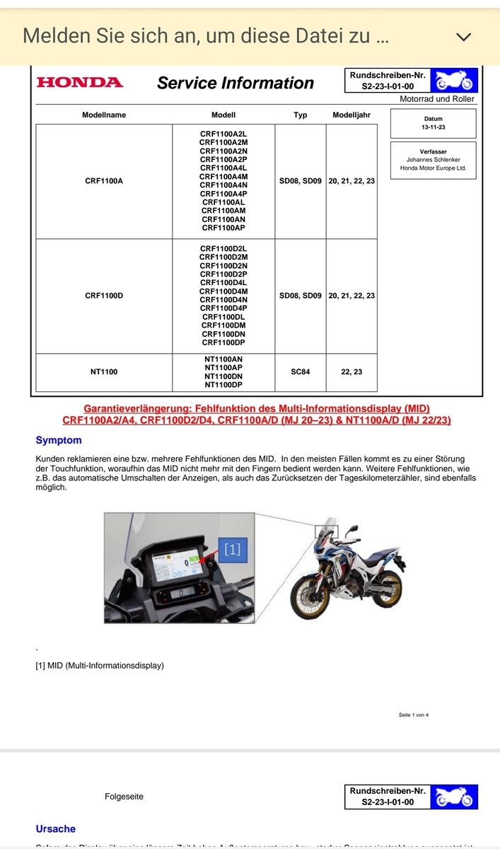 . Je nach Baujahr stellt Honda bis 2033 ein neues Display her und verbaut es auf eigene Kosten.