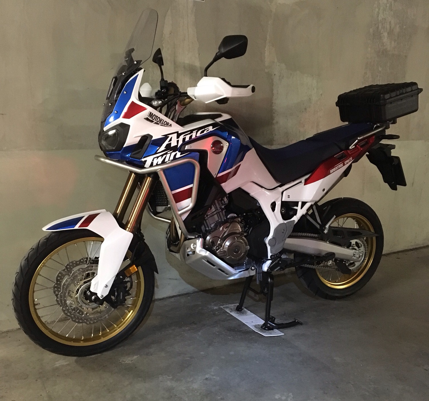 Hier mal mein Vorschlag wie man sich relativ einfach/günstig eine Halterung fürs Topcase, eine evtl. schon vorhandene Gepäckplatte, oder wie in meinem Fall einen Nachbau Peli Case Koffer an den originalen schönen Edelstahl Rohrgepäckträger der Adventure Sports bauen kann, ohne und das war mir wichtig, diesen zu verändern, sprich zu verhunaggeln