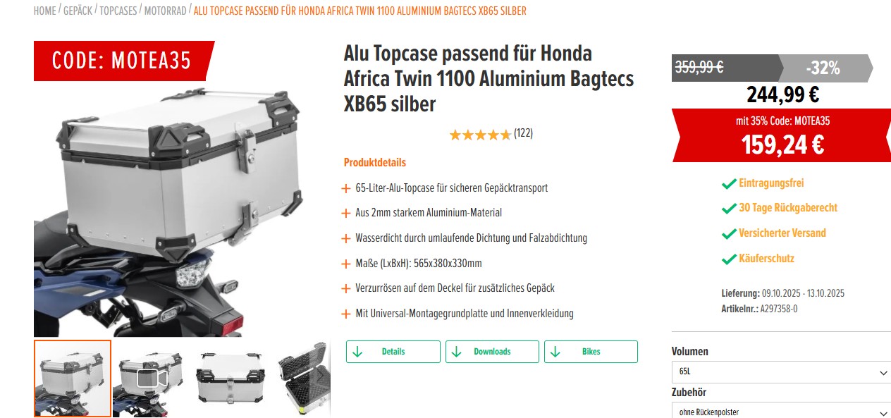 Motea 160€ (aber 65l)